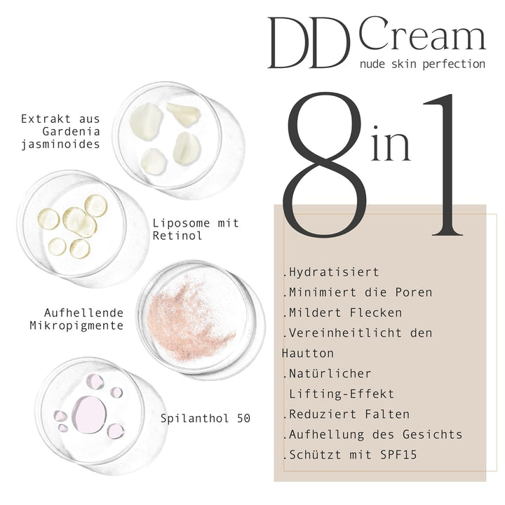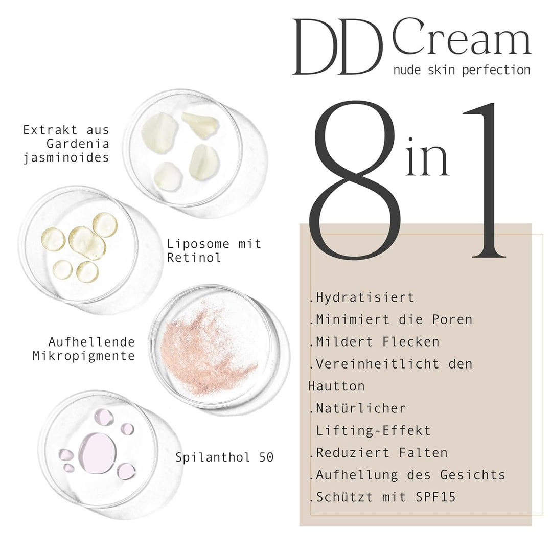 - Die Anti-Aging DD Cream wurde mit einer exklusiven Formulierung entwickelt, die die Schutzbarriere der Haut stimuliert und die Hautalterung verlangsamt. Minimiert Poren, reduziert Hautunreinheiten und sorgt für einen strahlenden Goldton, der verlorene