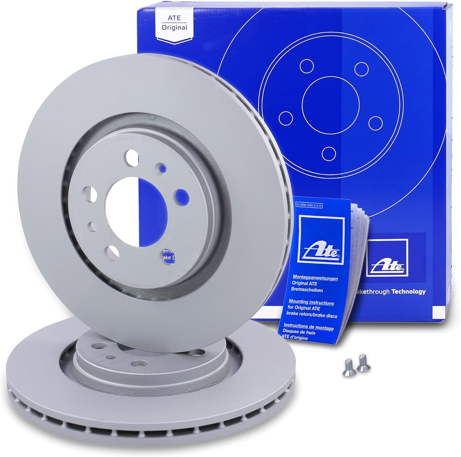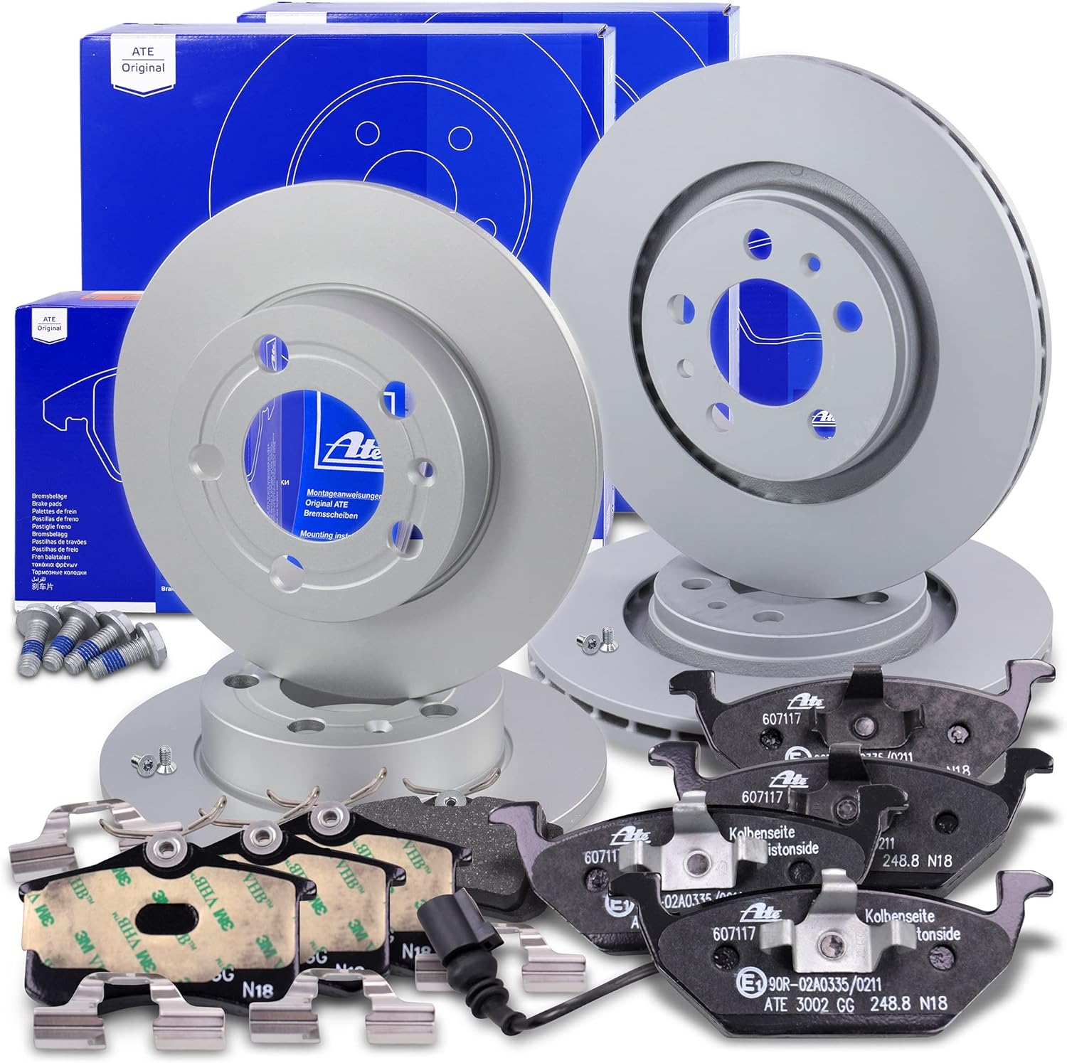 - LIEFERUMFANG - 2x ATE Bremsscheiben Vorderachse Belüftet; 4x ATE Bremsbeläge mit Verschleisssensor Vorderachse; 1x Anti-Quietsch-Paste gegen Bremsenquietschen (nicht auf die Reibfläche des Bremsbelages oder der Bremsscheibe aufbringen!); 2x ATE