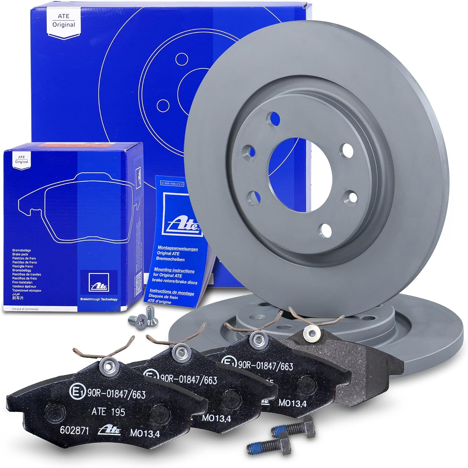 - LIEFERUMFANG - 2x ATE Bremsscheiben Vorderachse; 4x ATE Bremsbeläge Vorderachse; 1x Anti-Quietsch-Paste gegen Bremsenquietschen (nicht auf die Reibfläche des Bremsbelages oder der Bremsscheibe aufbringen!)