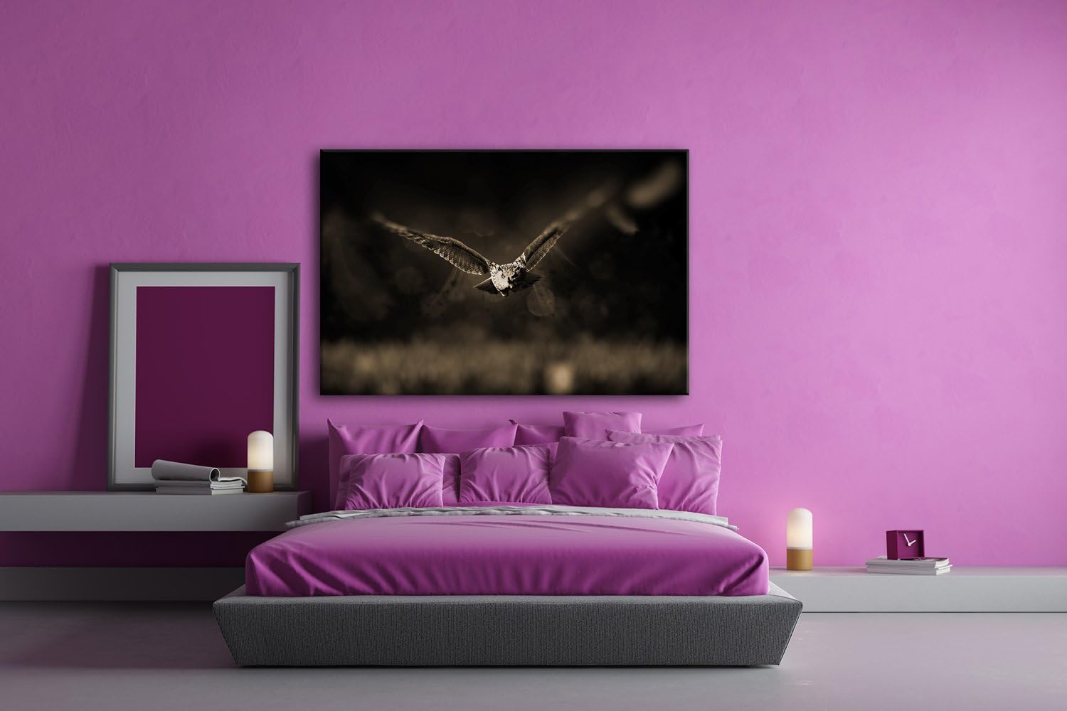 atemberaubende Eule auf der Jagd Format: 80x60 Effekt: Sepia als Leinwandbild, Motiv fertig gerahmt