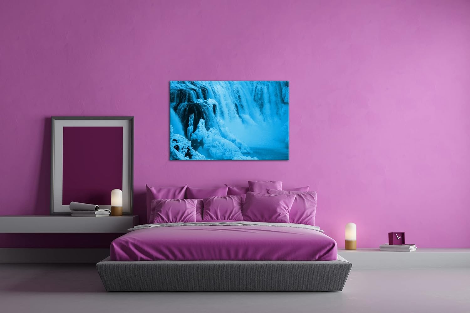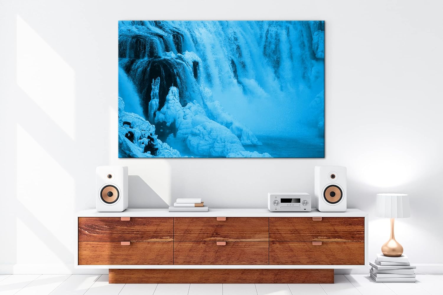 atemberaubender Wasserfall in der Natur Format 100x70 Effekt: Monocrome Blau als Leinwandbild, Motiv
