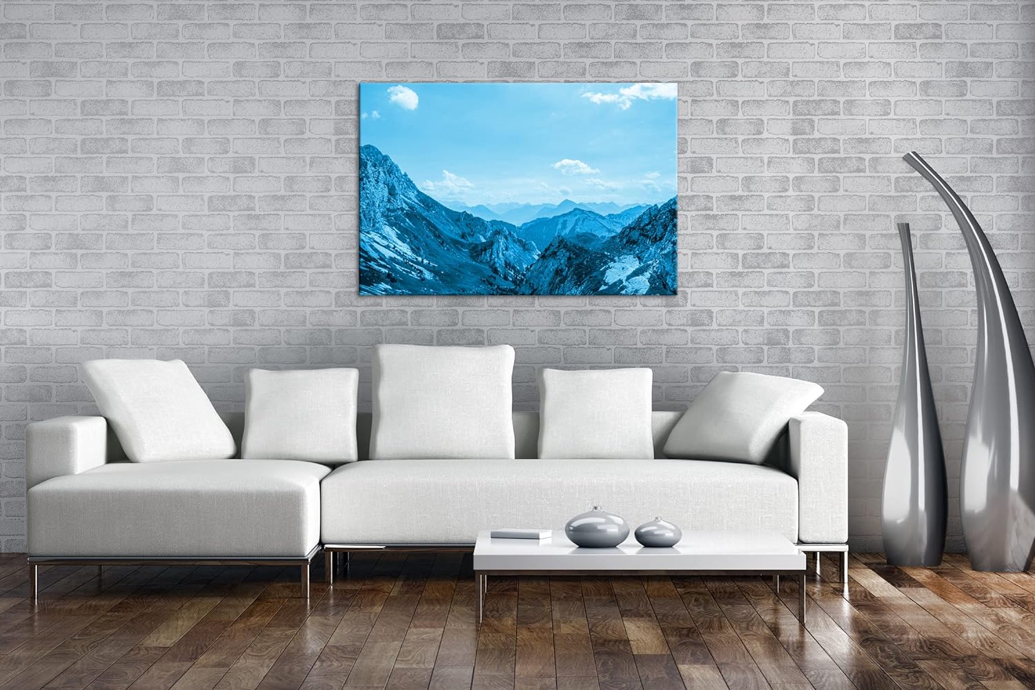 atemberaubender Ausblick in den Alpen Format 80x60 Effekt: Monocrome Blau als Leinwandbild, Motiv fe
