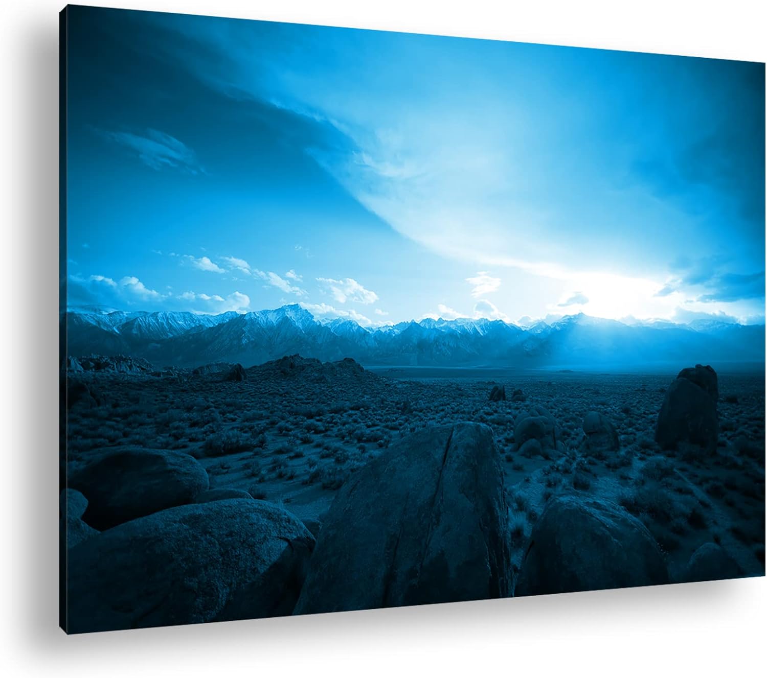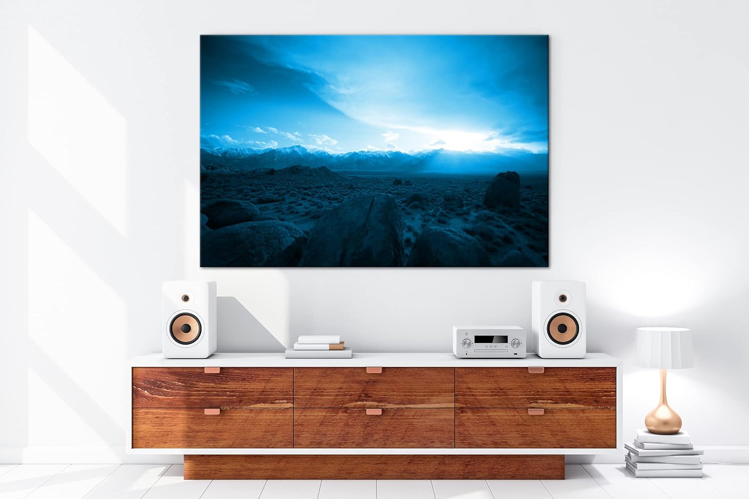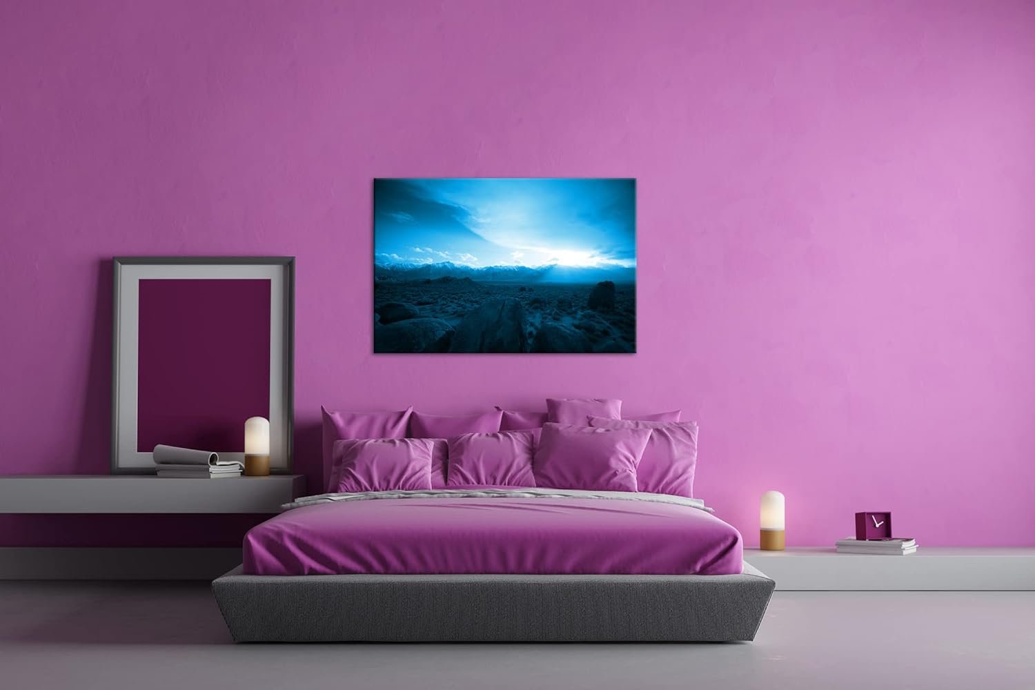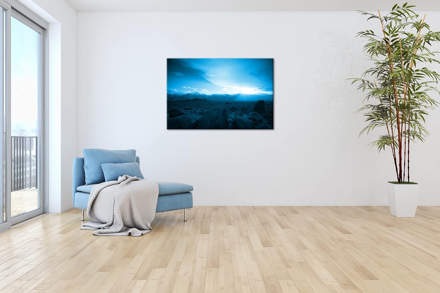 atemberaubender Sonnenaufgang in der Steppe Format 80x60 Effekt: Monocrome Blau als Leinwandbild, Mo