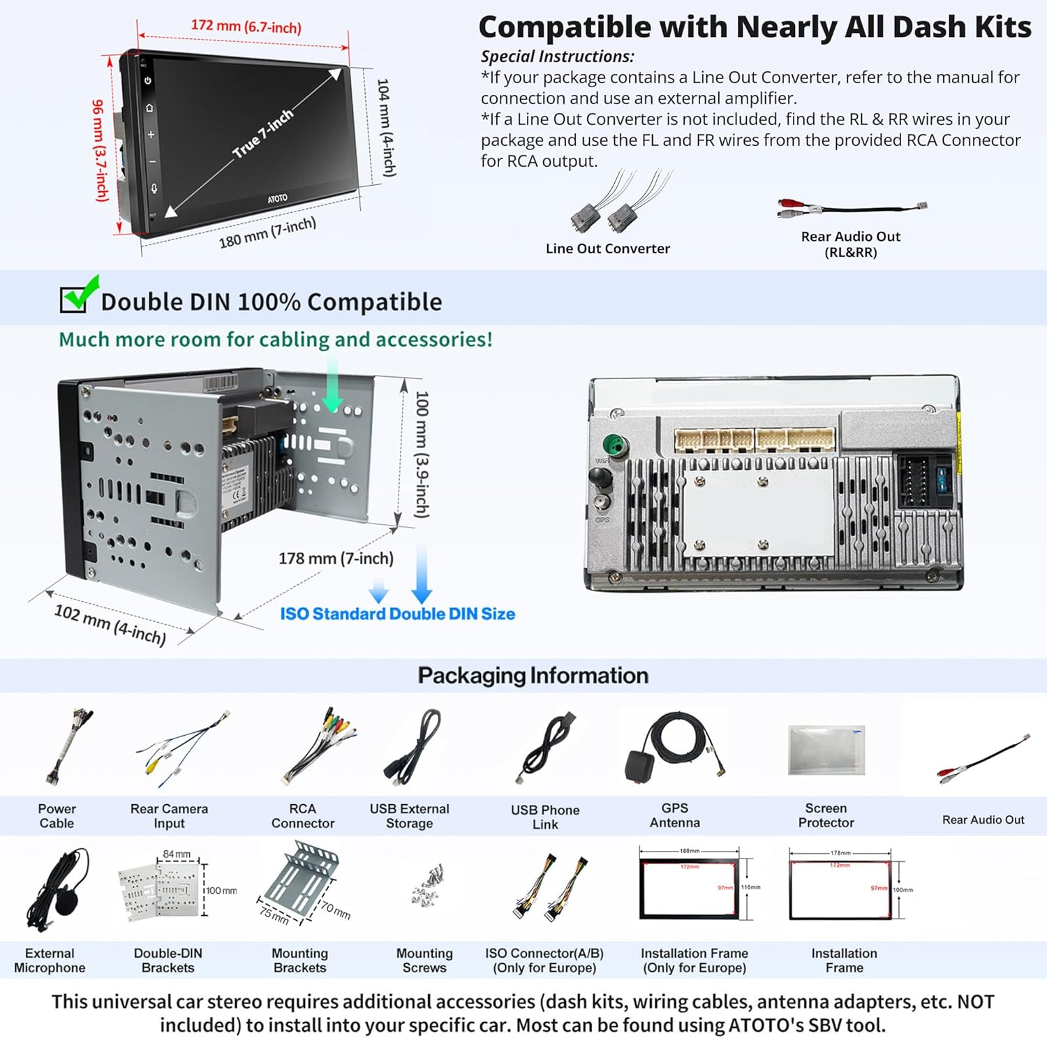 - 【Kompatibilität und Unterstützung】 Das A6PF Autoradio Doppel-DIN verfügt über ein 172*96mm Frontpanel, das mit vielen Einbaurahmen kompatibel ist und einen echten 7-Zoll-Touchscreen hat. Es bietet Schnittstellen wie Videoausgang und USB TPMS.