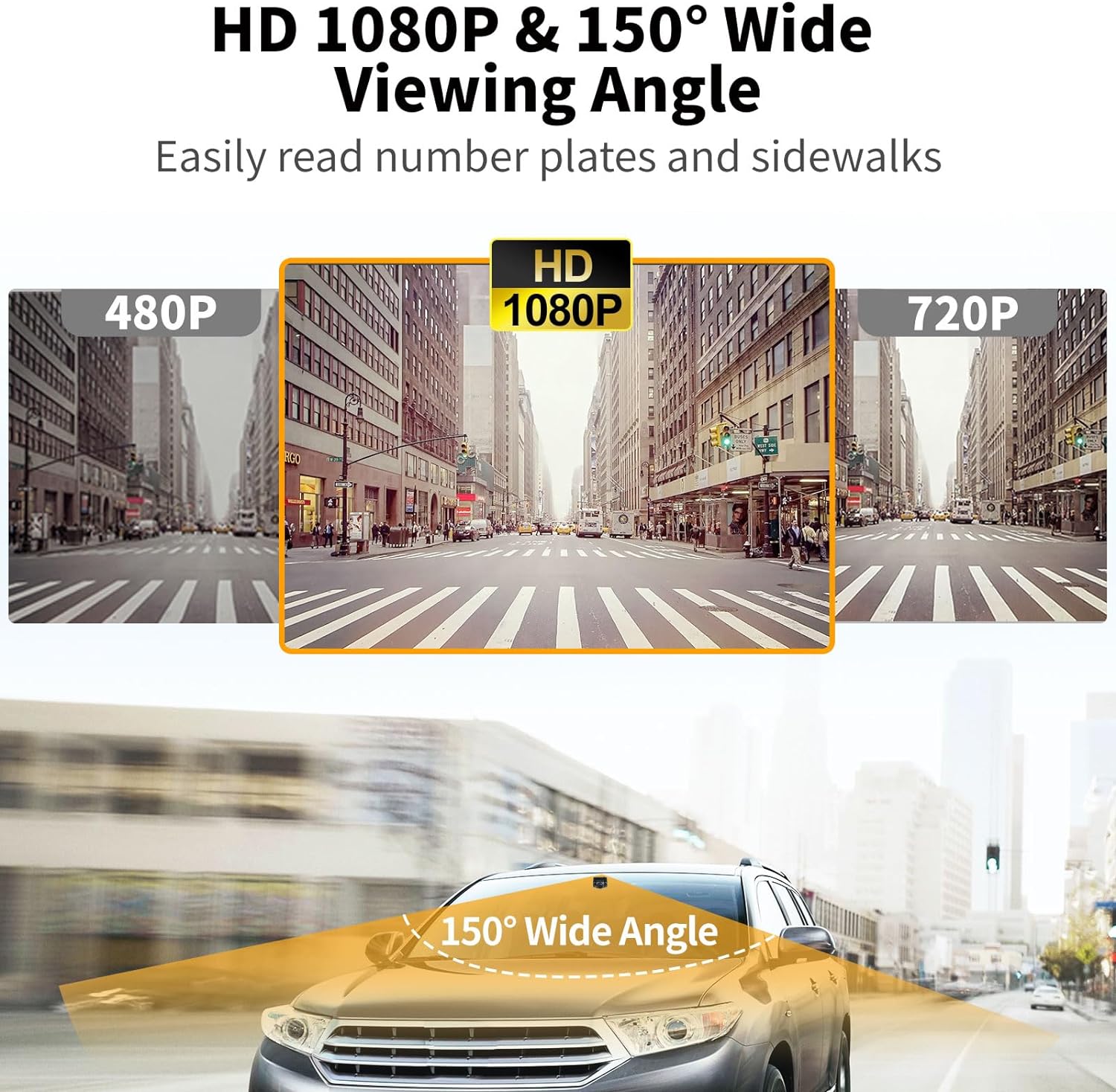 - 【HD 1080P-Anzeige und automatischer Start】①Klare Anzeige: HD 1080P-Dashcam mit 150° weitem Betrachtungswinkel ermöglicht es Ihnen, die gesamte Strasse zu sehen und mehr Details wie Nummernschilder und Bürgersteige zu erfassen; ②Autostart: Die