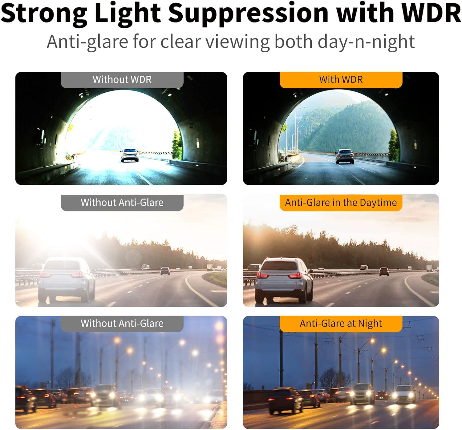 - 【Starke Lichtunterdrückung und G-Sensor】③Starke Lichtunterdrückung: Wenn Sie auf störendes Fernlicht stossen, kann die Frontkamera das blendende Licht vermeiden und zeigt dennoch ein klares Video auf Ihrem Display. Ausserdem ist die