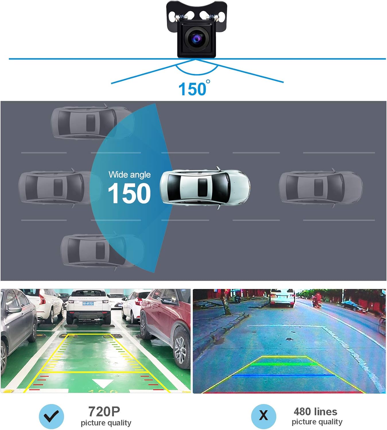 - HD-Rückfahrkamera mit Einparkhilfe und Installationskabeln. Einfach zu installieren: 2 Installationsoptionen, Sie können je nach Fall zwischen Halterungsmontage oder Unterputzmontage wählen.