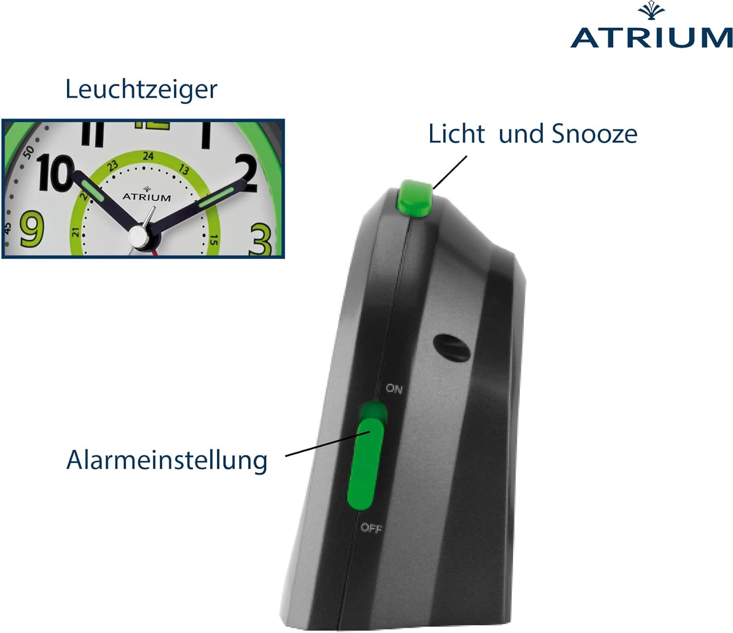 - 4-stufig ansteigendes Wecksignal: Piepton; dank Schlummerfunktion (Snooze) kann der Alarmton im 5 Minuten Takt wiederholt werden und die schleichende Sekunde sorgt für einen ungestörten Schlaf (kein Ticken)