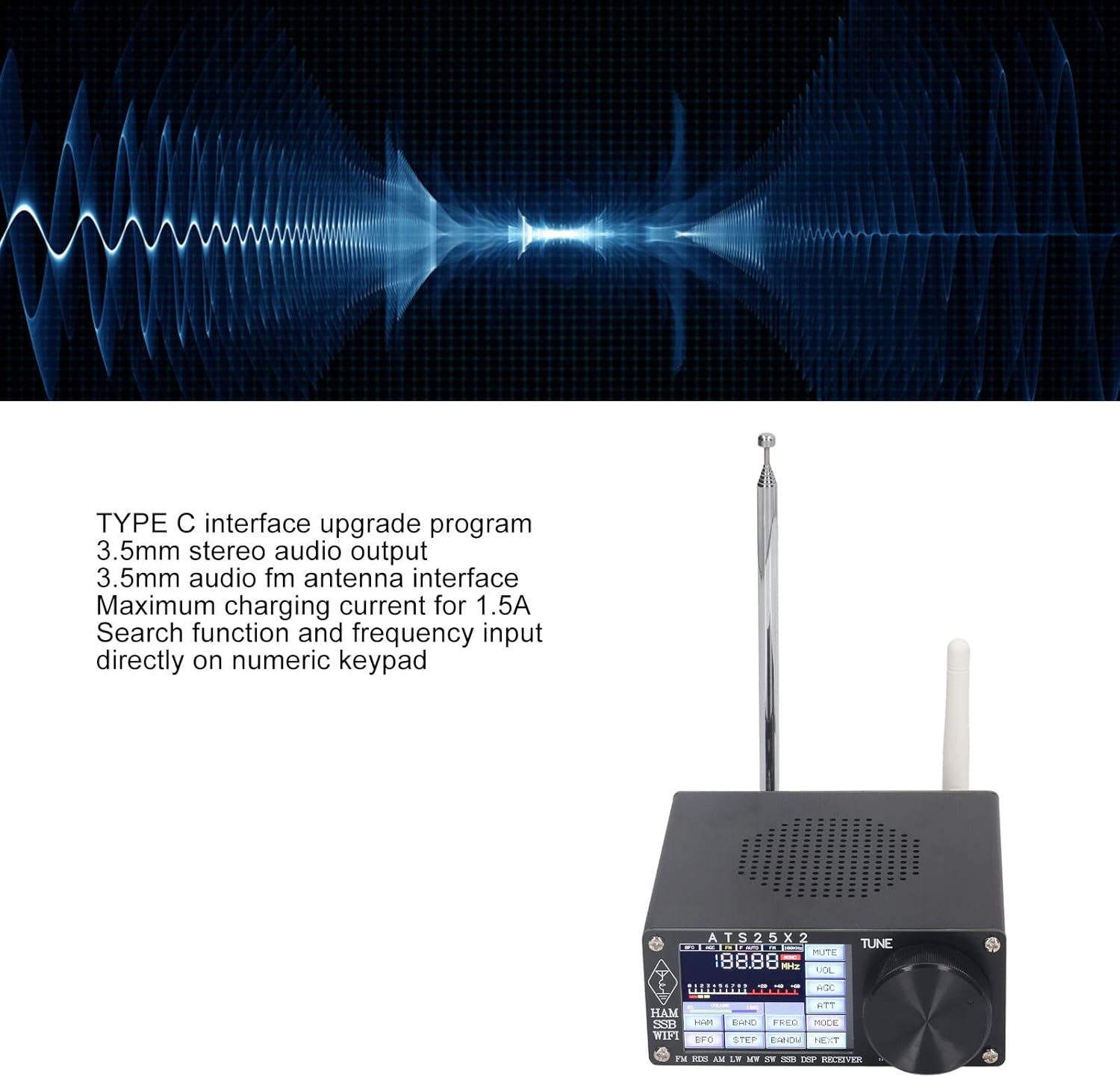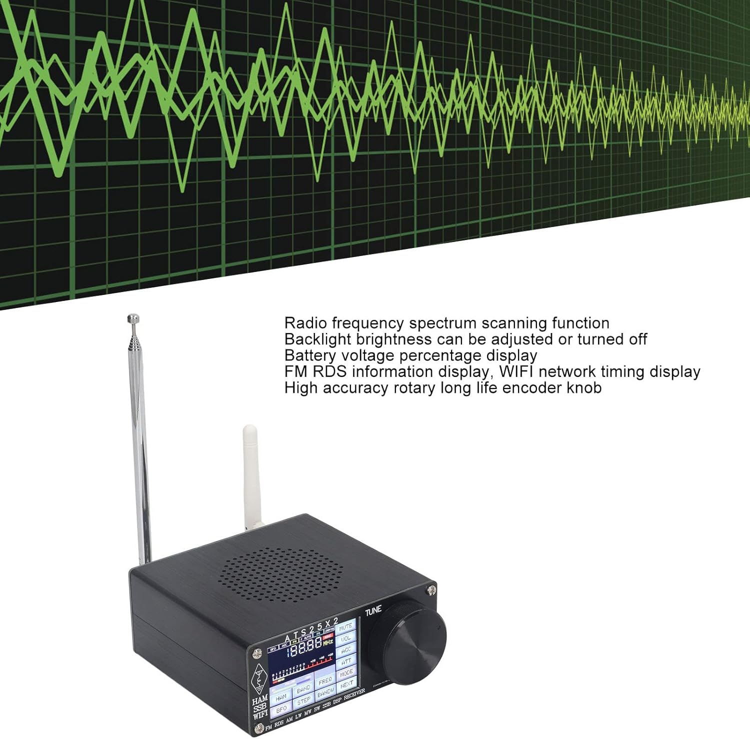 - KLARES DISPLAY: Empfänger mit Funkfrequenzspektrum-Scanfunktion, Helligkeit der Hintergrundbeleuchtung kann angepasst oder ausgeschaltet werden, Anzeige des Batteriespannungsprozentsatzes, FM-RDS-Informationsanzeige, WIFI-Netzwerk-Timing-Anzeige