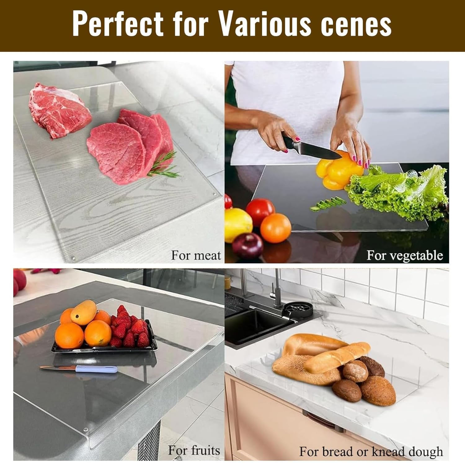 - 【Vielseitig einsetzbar】Unser durchsichtiges Schneidebrett für die Arbeitsplatte ist mehr als nur ein Schneidebrett, es ist eine multifunktionale Oberfläche, die Ihre Küchenarbeitsplatten vor Messerspuren schützt und als perfekte Lösung für