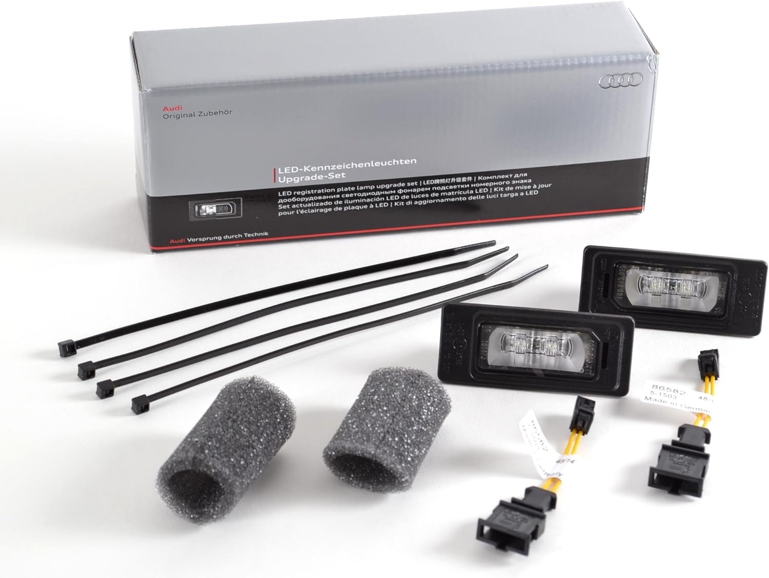- Lieferumfang: jeweils 2 LED Kennzeichenleuchten, Adapterkabel, Schaumstoffrohr, Kabelbinder und Einbauanleitung