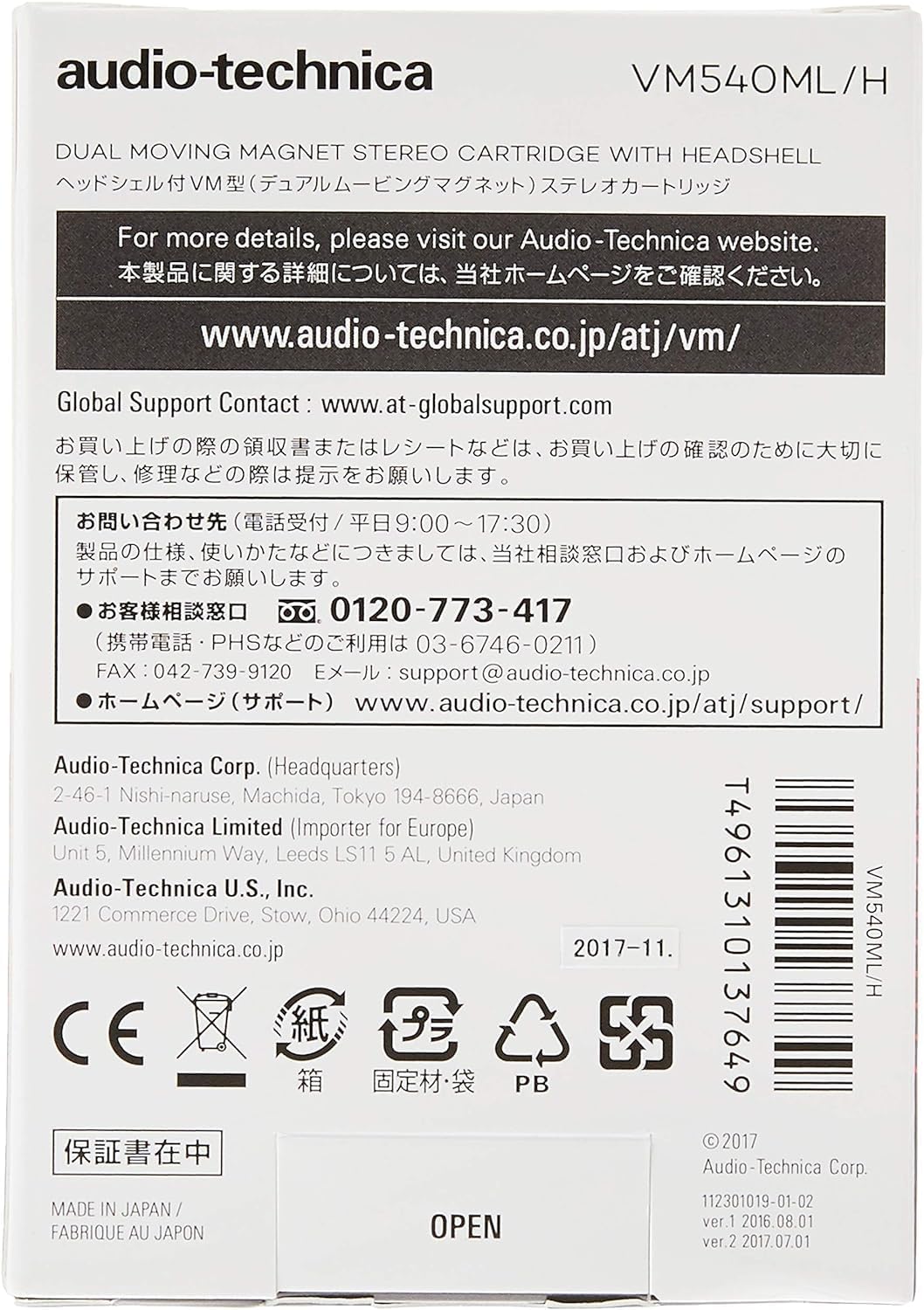 Audio-Technica VM540ML/H Dual-Moving-Magnet-Stereotonabnehmer Plus Headshell Rot VM540ML/H Combo Kit