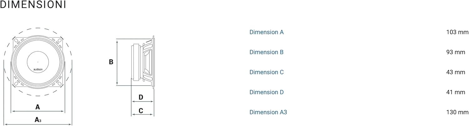 • Einbauöffnung: 93 mm, Aussendurchmesser: 103mm, Einbautiefe: 41 mm, Wirkungsgrad : 91 dB