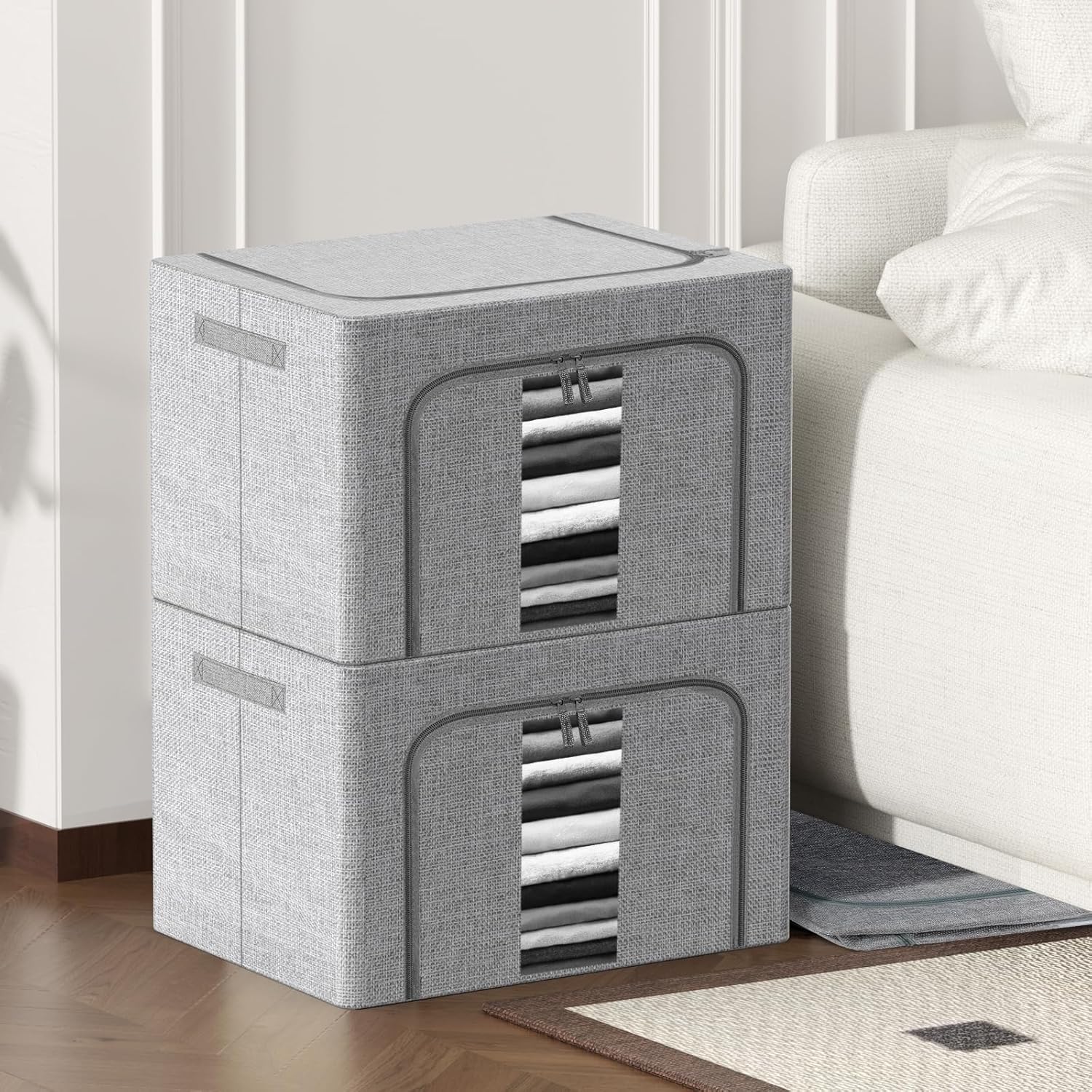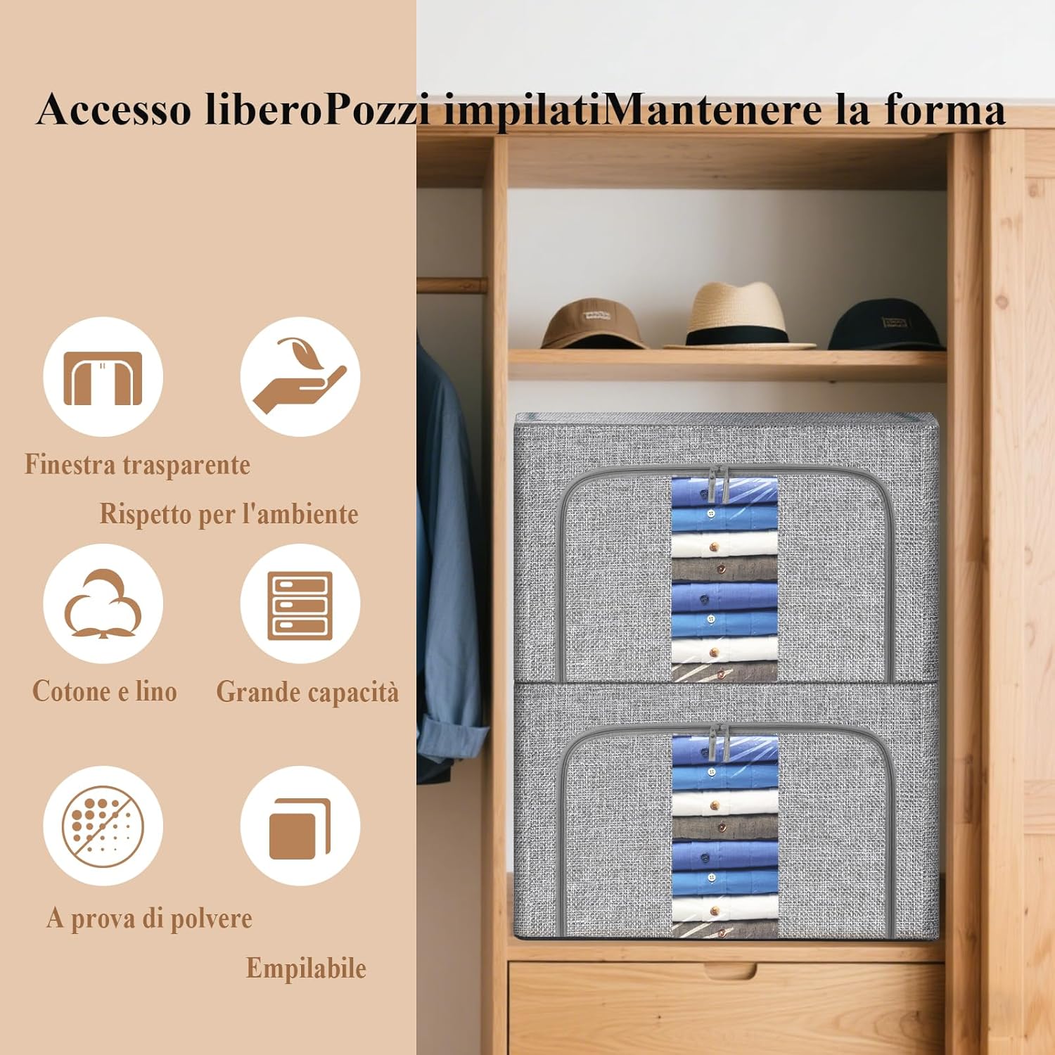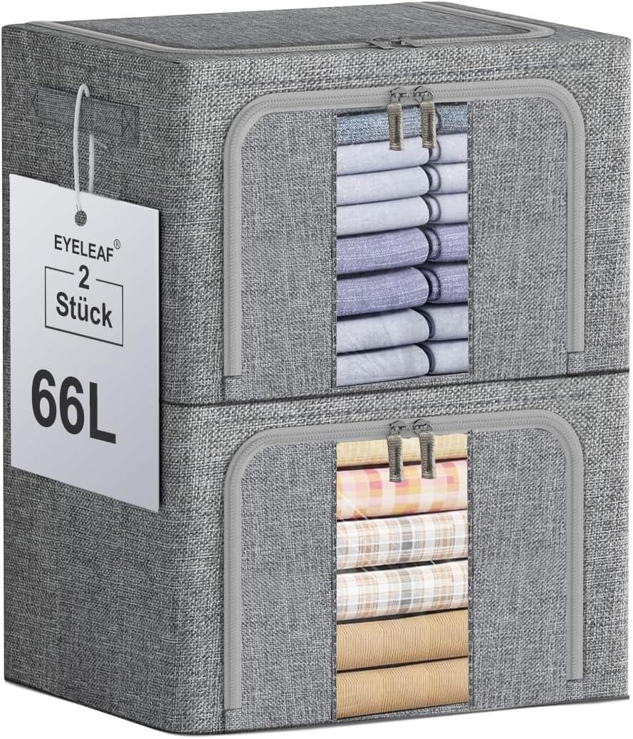 • 【Flexibel & Platzsparend】66L Optimale Grösse (50X40X33cm). Eine Kleiderbox hat die Grösse eines keinen Standard-Kleiderschrankregals. Es ist ideal für die Aufbewahrung von Kleidung, Bettwäsche, Kissen, aber auch Spielzeug und Dinge für das