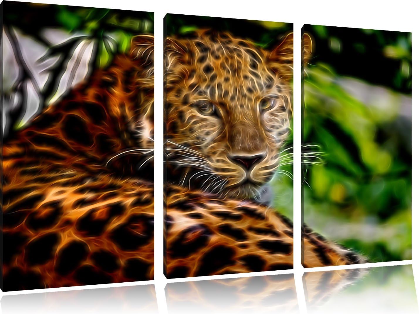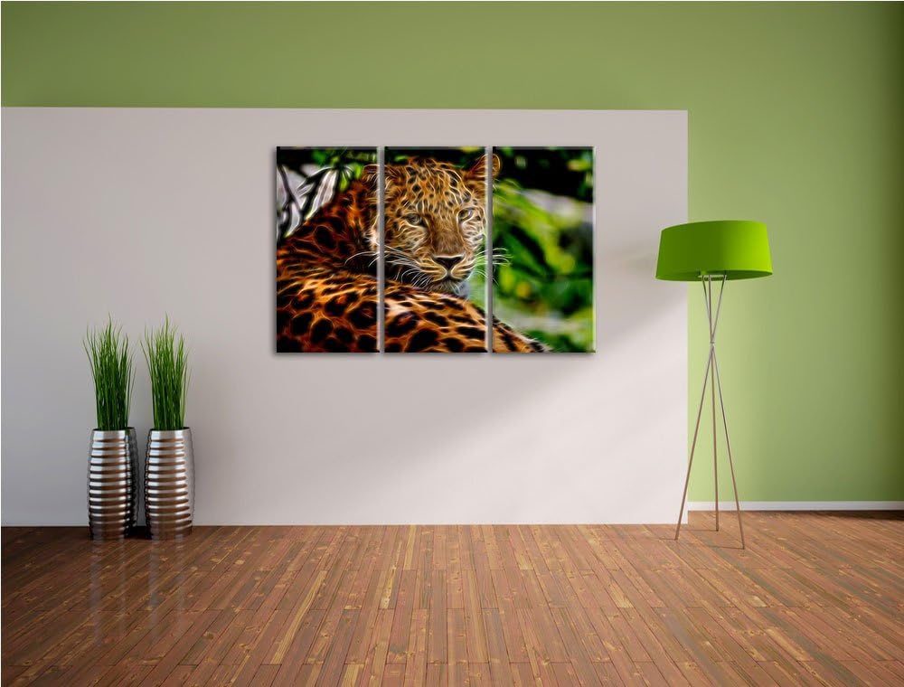 aufmerksamer Leopard im Schatten Spezial 3-Teiler Leinwandbild 120x80 Bild auf Leinwand, XXL riesige