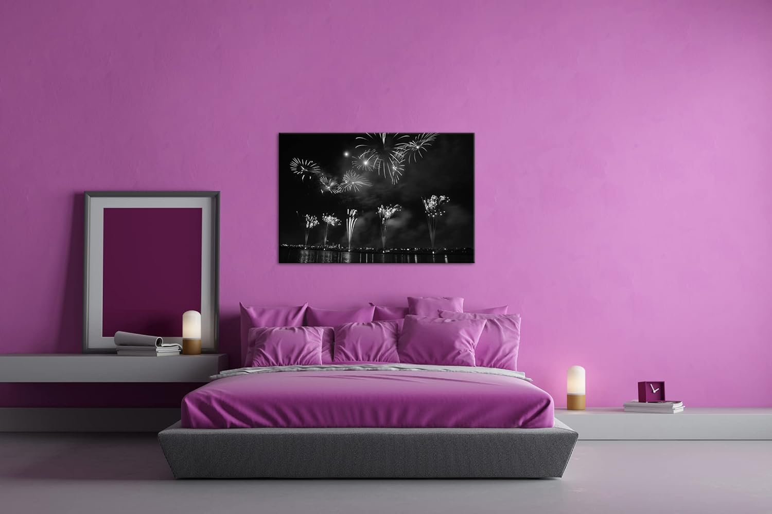 aufsteigendes Feuerwerk in der Nacht Effekt: Schwarz&Weiss,Format: 80x60 als Leinwandbild, Motiv fer