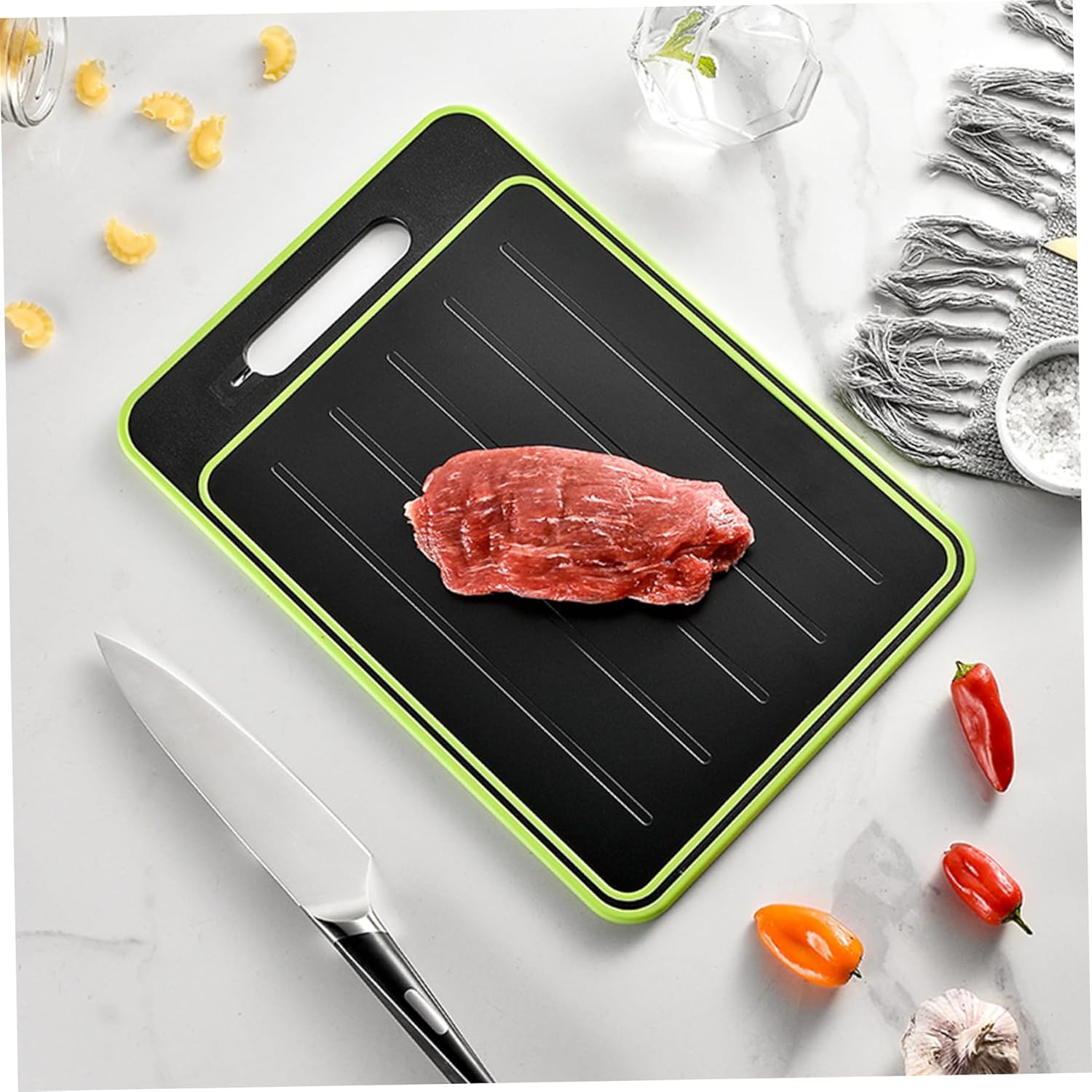 - Effizientes Kochen: Unser Abtauungsbrett verfügt über doppelseitige Hackketten, die eine Fast -Food -Zubereitung ermöglichen..Sparen Sie Zeit, Mühe und Platz in Ihrer Küche und geniessen Sie effizientes Auftauen und nahtlose
