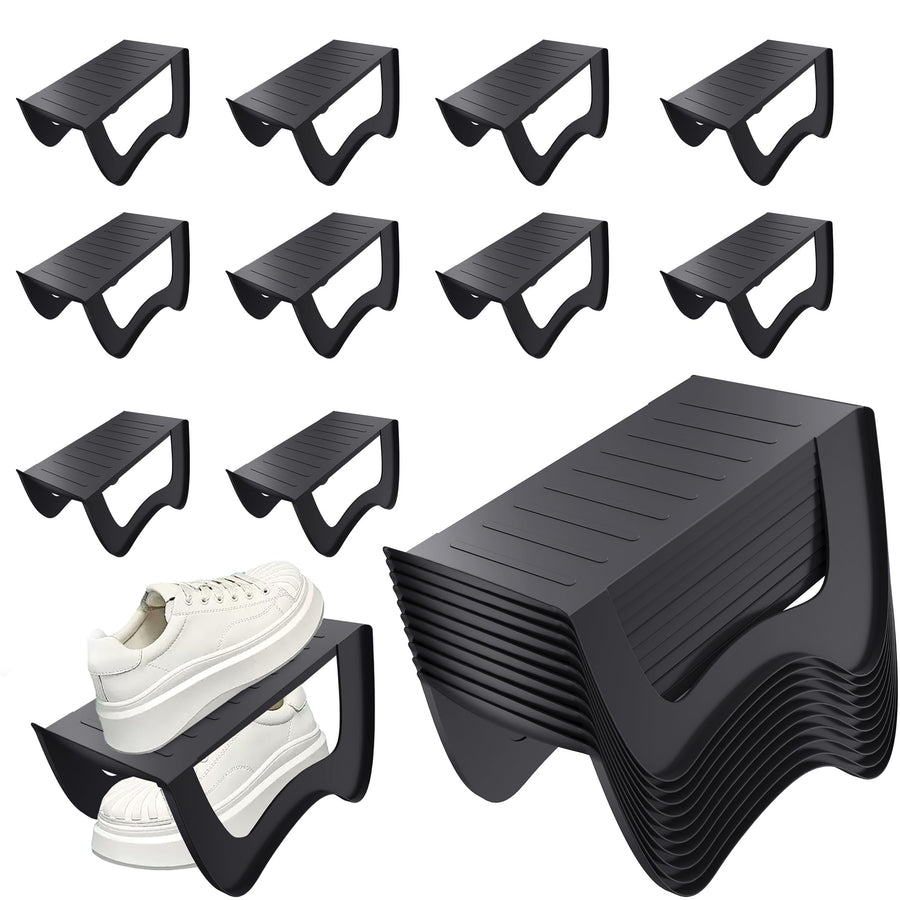 - Sichere und rutschfeste Konstruktion: Das doppellagige Schuhregal ist mit einem rutschfesten Stabmuster ausgestattet, das die Stabilität des Regals erhöht und zuverlässig verhindert, dass Schuhe verrutschen oder herunterfallen. So bleiben Ihre Schuhe
