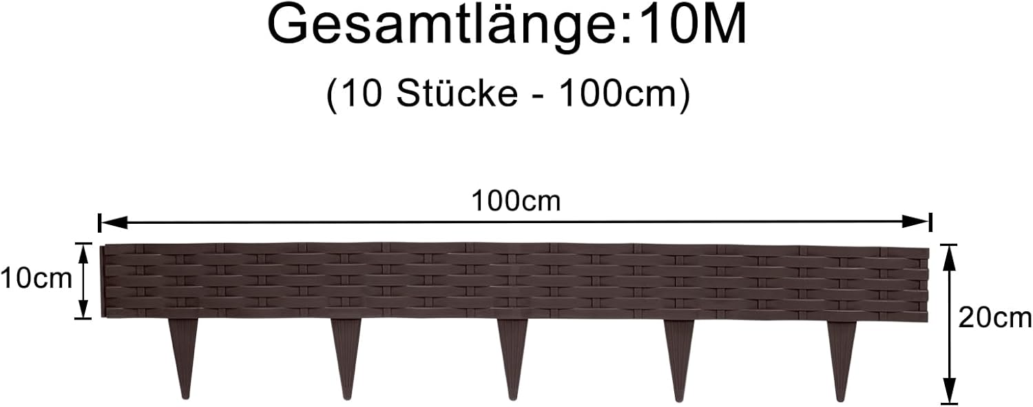 Aufun 10m Rattan Rasenkante Beeteinfassung Kunststoff mit 10 Elemente á 100 cm, Rattan-Optik Design
