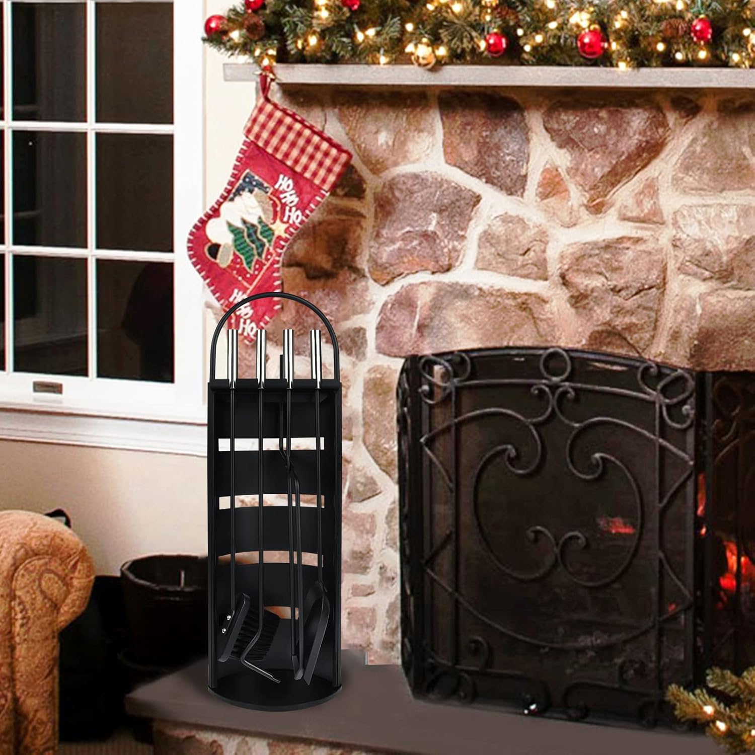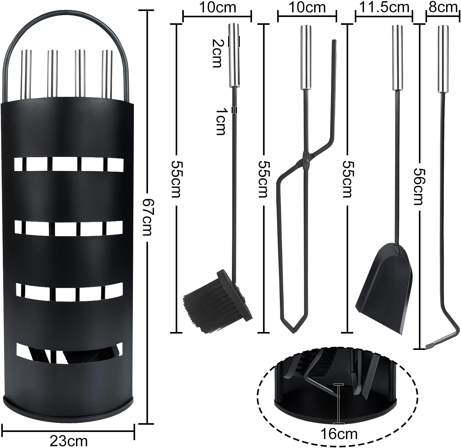 - Kaminzubehör -- Material: Edelstahl, Eisen; 1x Kaminset-Ständer, 1x Schürhaken, 1x Kaminbesen, 1x Ascheschaufel, 1x Kaminzange; Gesamtgewicht: ca. 2,9 kg
