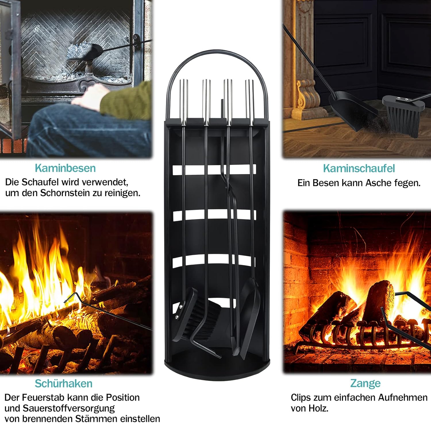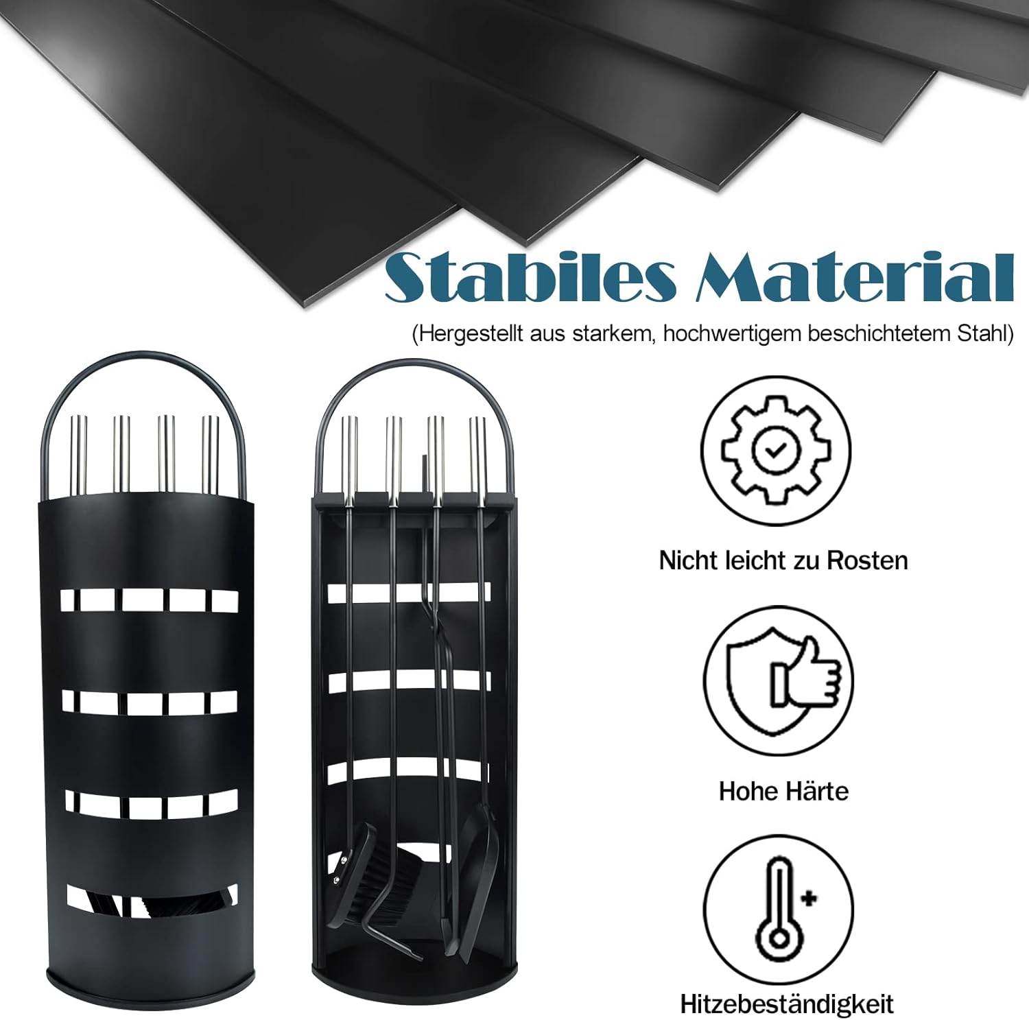 - Kaminwerkzeuge werden kippsicher im rutschfesten Ständer aufbewahrt