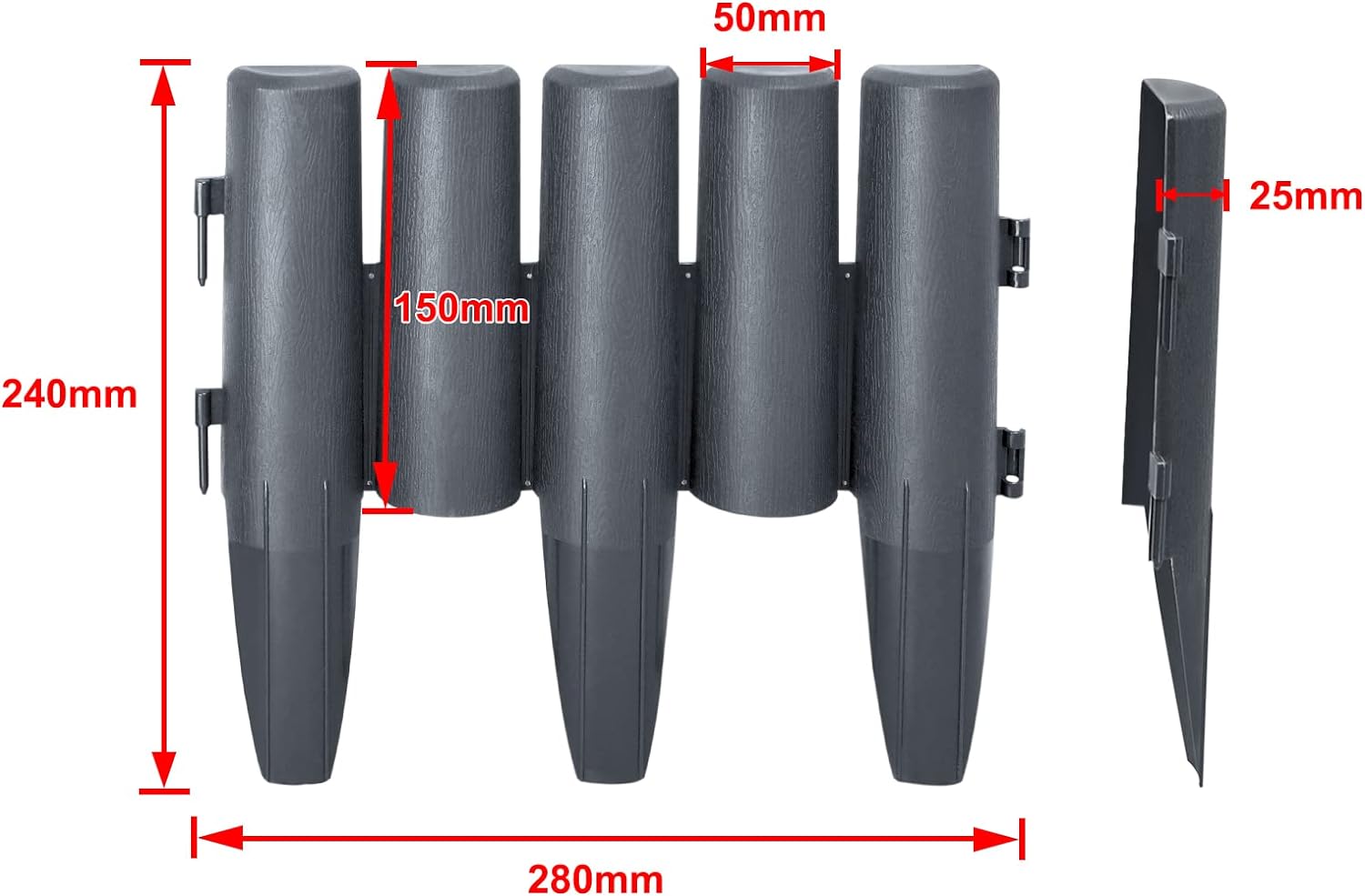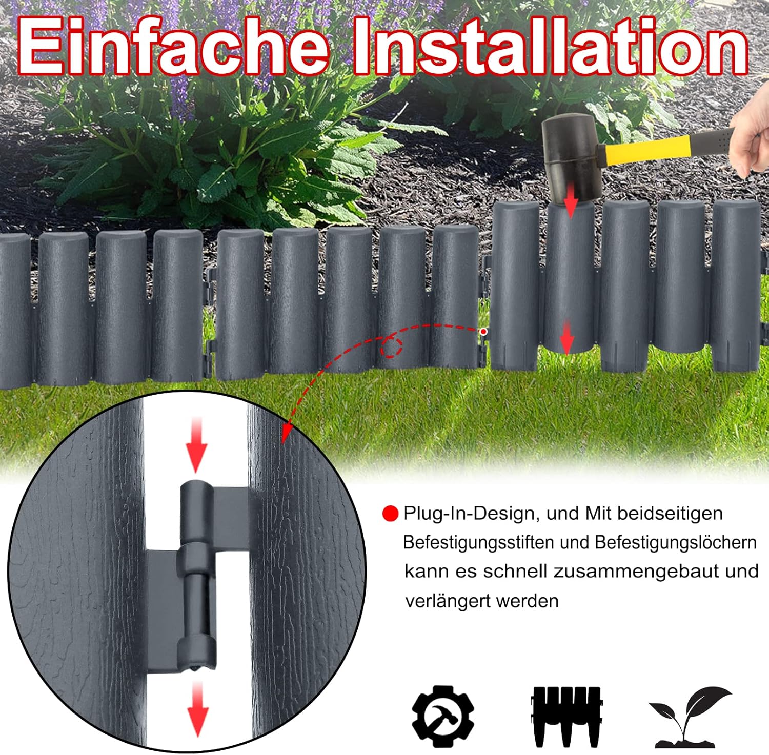 - Endlos verlängerbar -- Flexibles Stecksystem - Das Garten-Set umfasst 10 Teile - Masse jeweils H x B x T: ca. 24 x 28 x 1 cm - Damit erreichen Sie insgesamt eine Länge von ca. 280 cm. Sie können die entsprechende Länge entsprechend Ihren