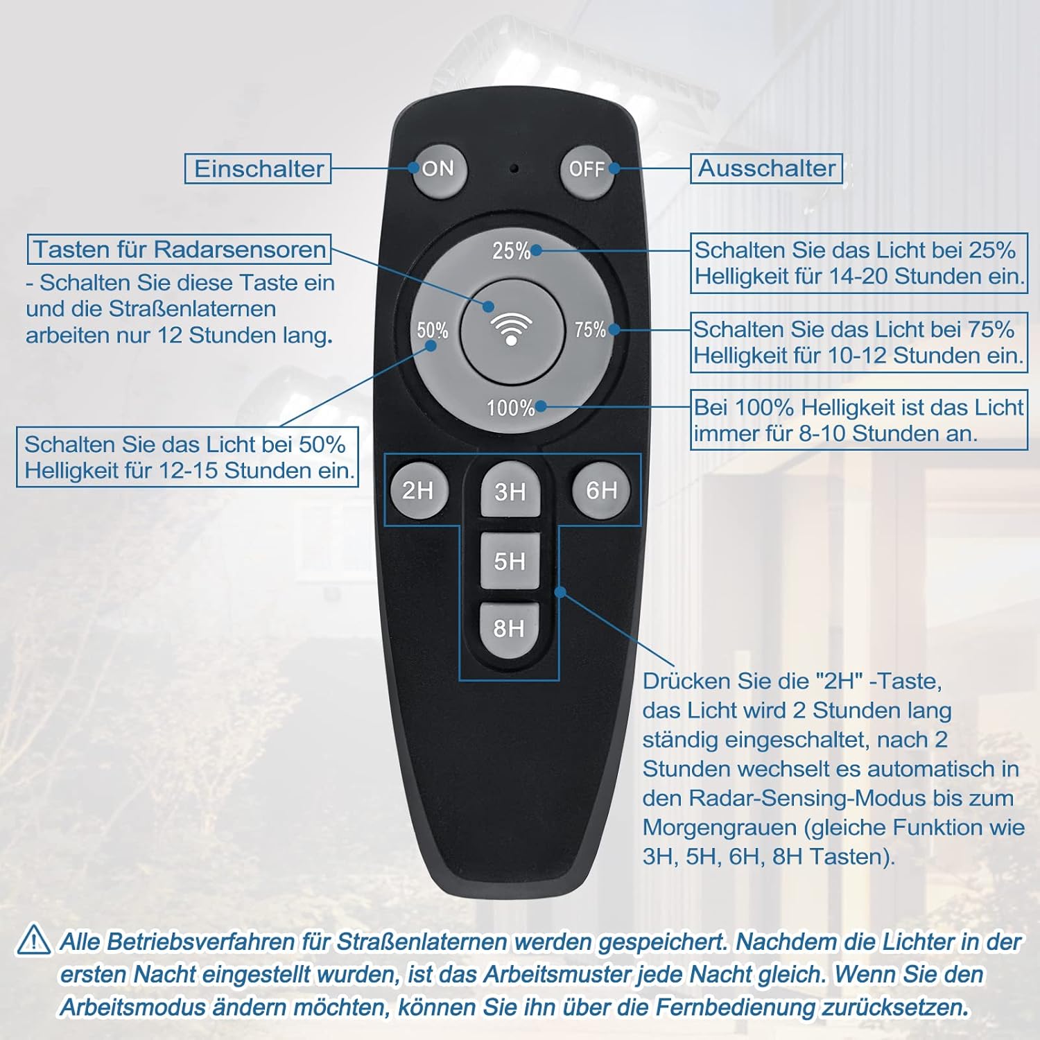 - ☀️【Radarsensor】Kann per Fernbedienung auf Radarmodus umgestellt werden, wenn eine Bewegung erkannt wird, schaltet der LED-Aussenstrahler innerhalb von 2 Sekunden den 100% Helligkeitsmodus ein. Verlässt jemand den Erfassungsbereich, geht es