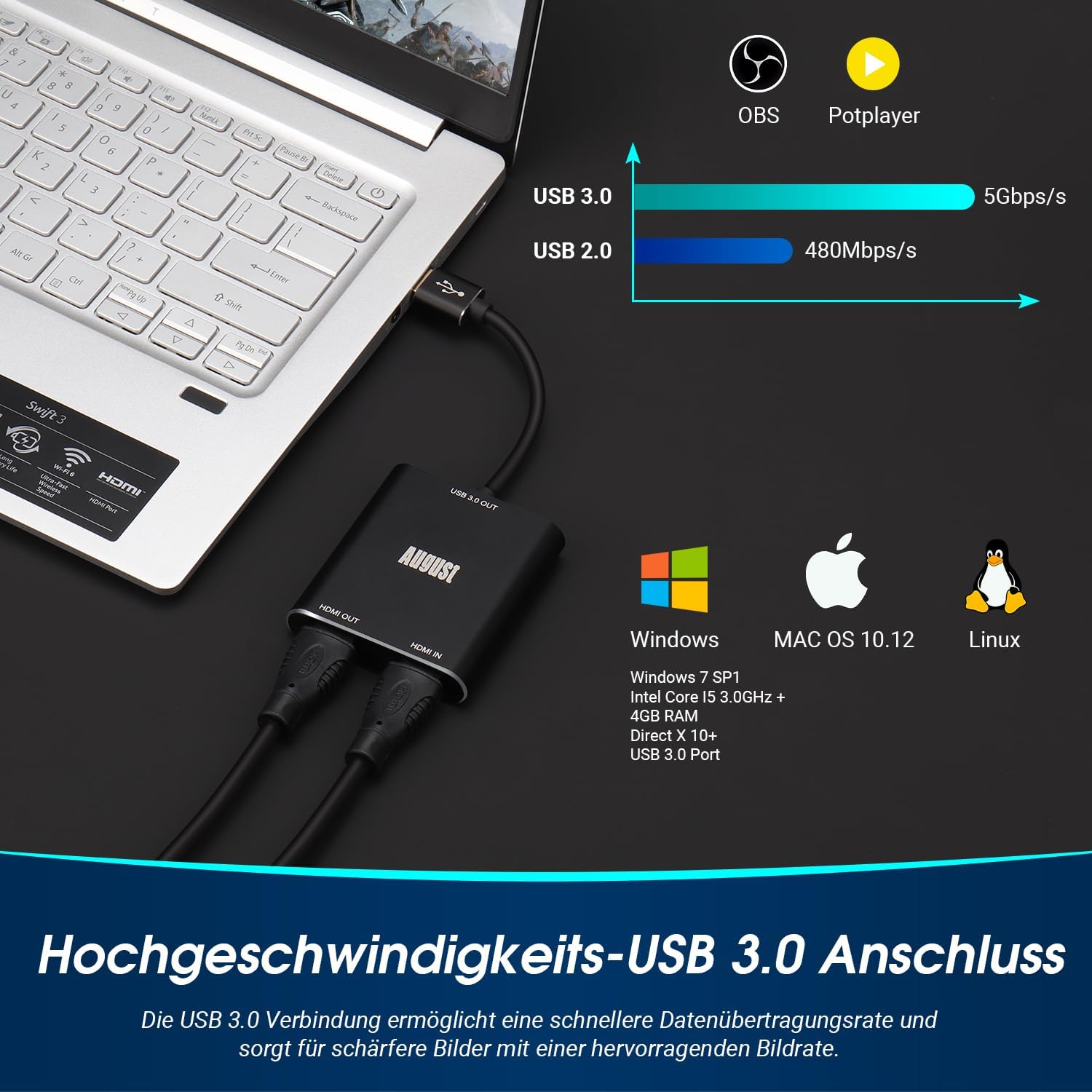 - GAMING OHNE VERZÖGERUNG – Per HDMI spielen Sie in Real Time während Sie aufnehmen. Geniessen Sie Ihr Gaming Erlebnis!