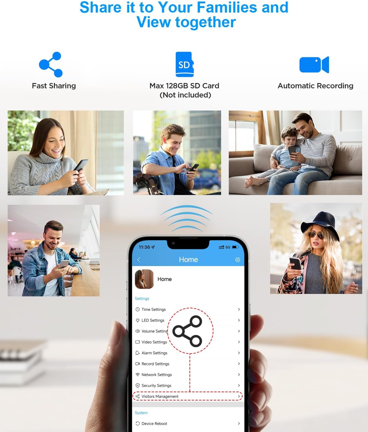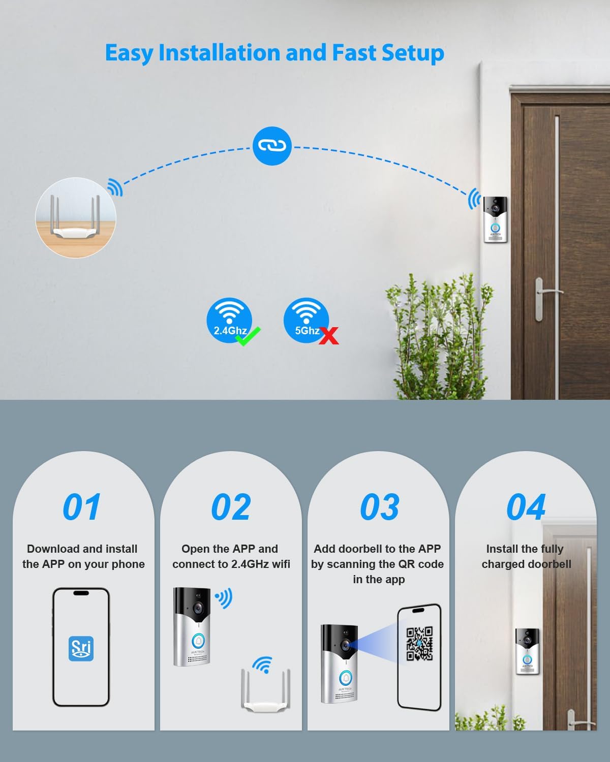 • PIR Bewegungssensor für erweiterte Sicherheit: Der eingebaute PIR-Bewegungssensor erkennt Bewegungen und benachrichtigt Sie sofort, sodass Sie immer wissen, wer vor Ihrer Tür steht."