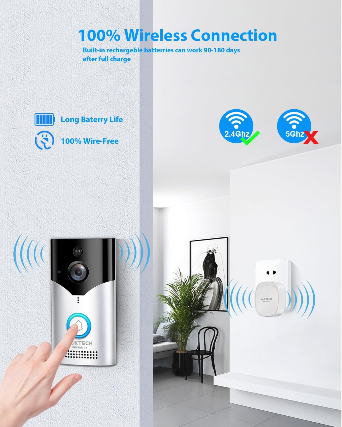 AUKTECH Türklingel mit Kamera, 4MP Video Türklingel Kabellos Akku mit Chime, 2.5K FHD Nachtsicht, PI