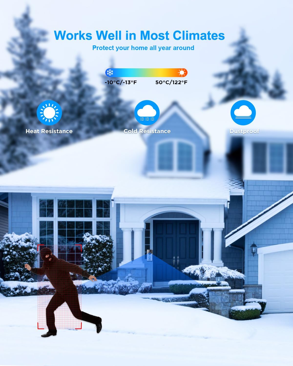 • Kompatibel mit 2.4GHz WLAN & Wetterfestes Design: Mit 2.4GHz WLAN-Verbindung können Sie jederzeit auf die Kamera zugreifen. Robust und langlebig für zuverlässigen Einsatz bei jedem Wetter.
