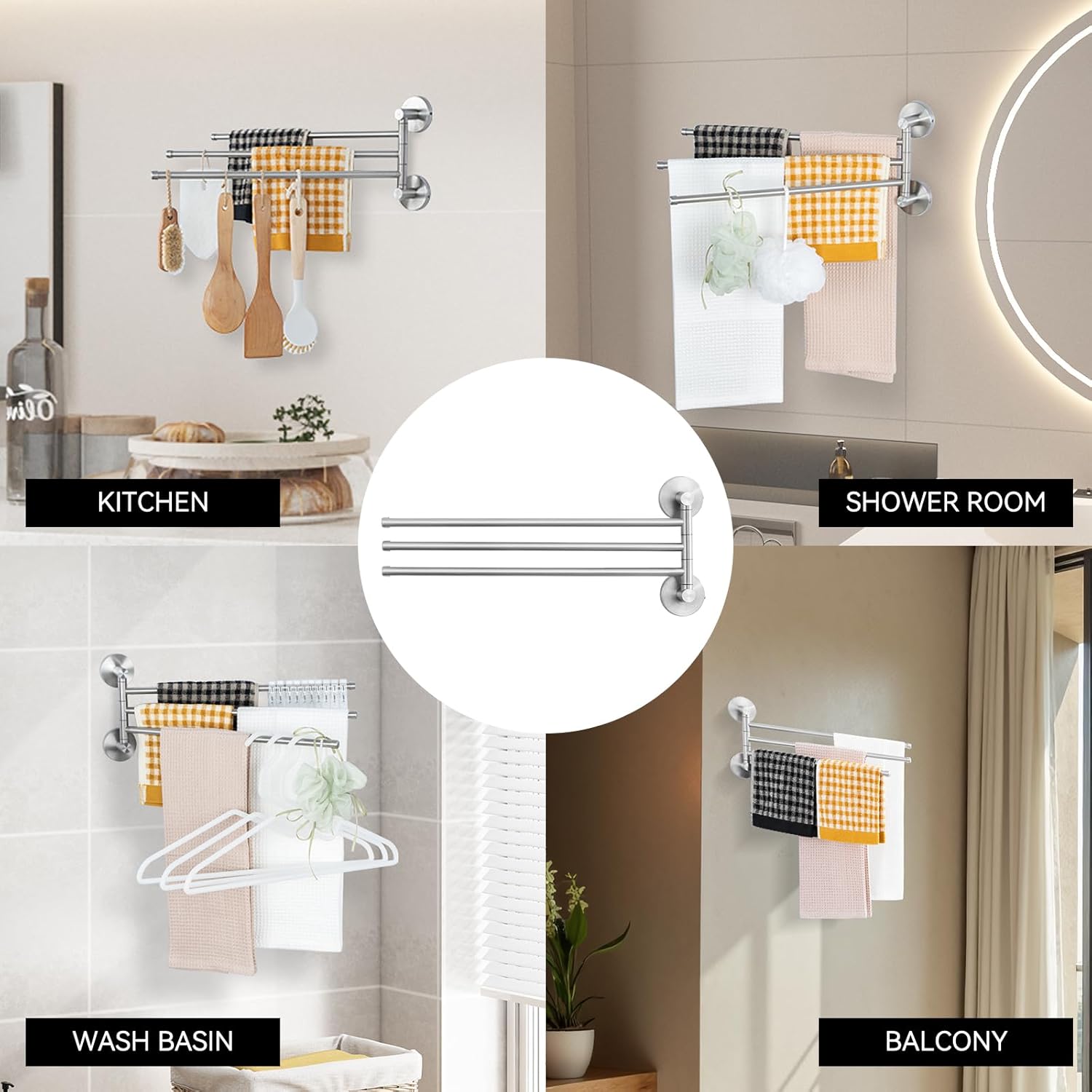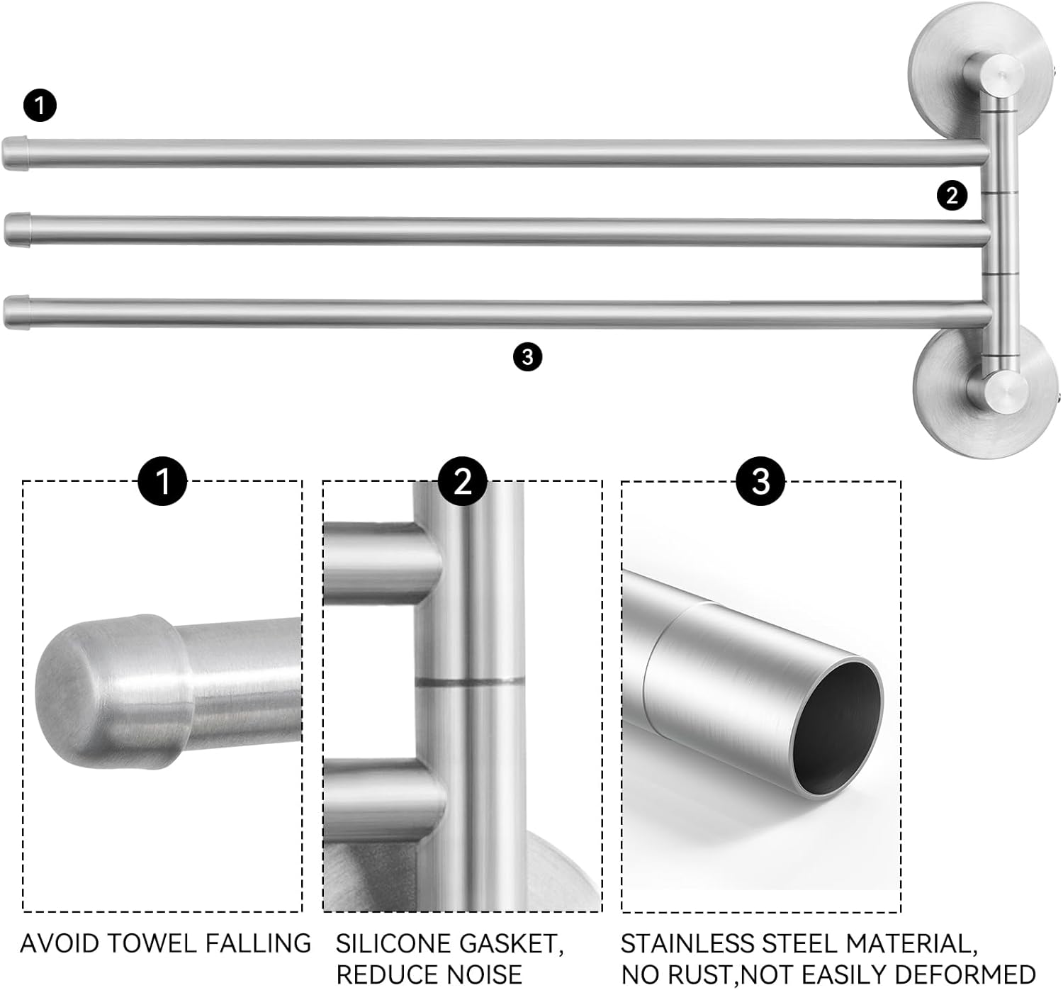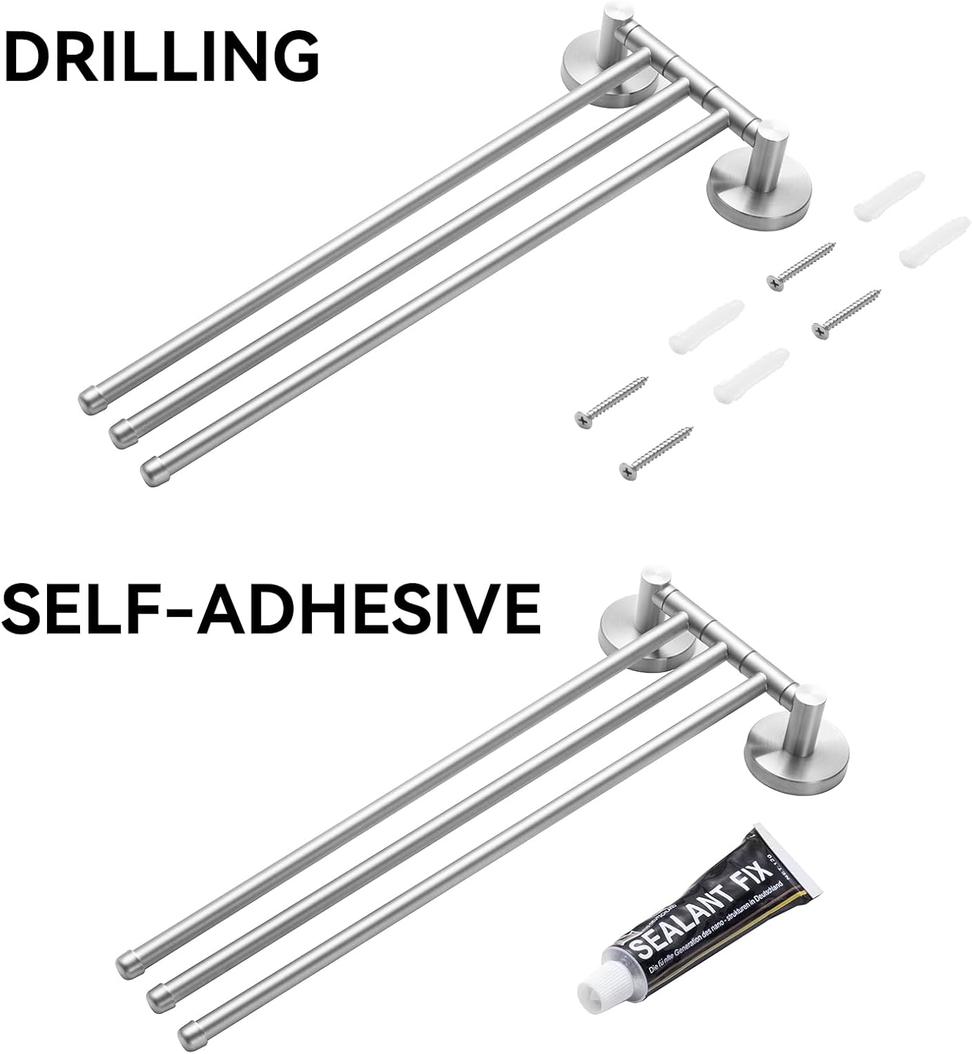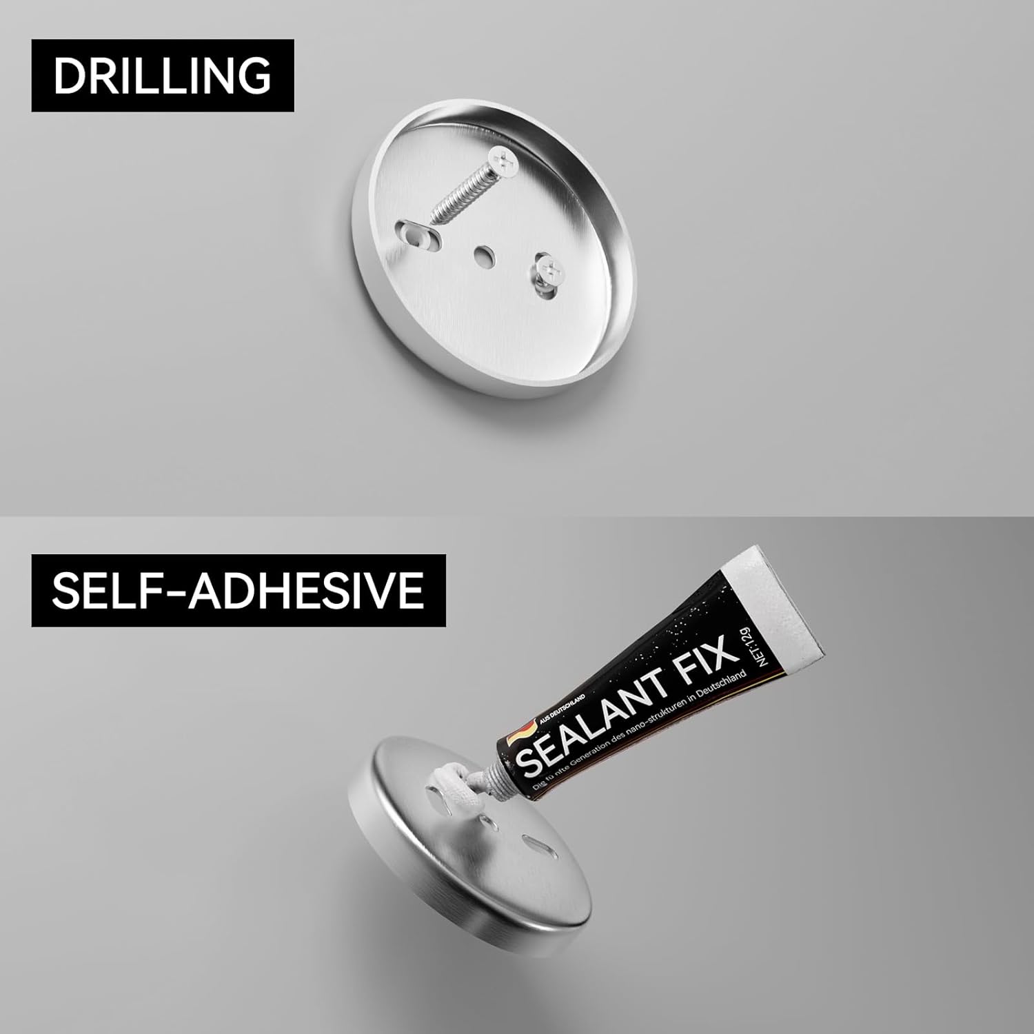 - Handtuchhalter ohne Bohren/mit Bohren,2-in-1 Handtuchstange Edelstahl Kann 5 KG Tragen,Handtuchhalter Wand 42CM,Zweiarmig Handtuchhalter für Bad, Küche, Sauna - Chrom, Gebürstet