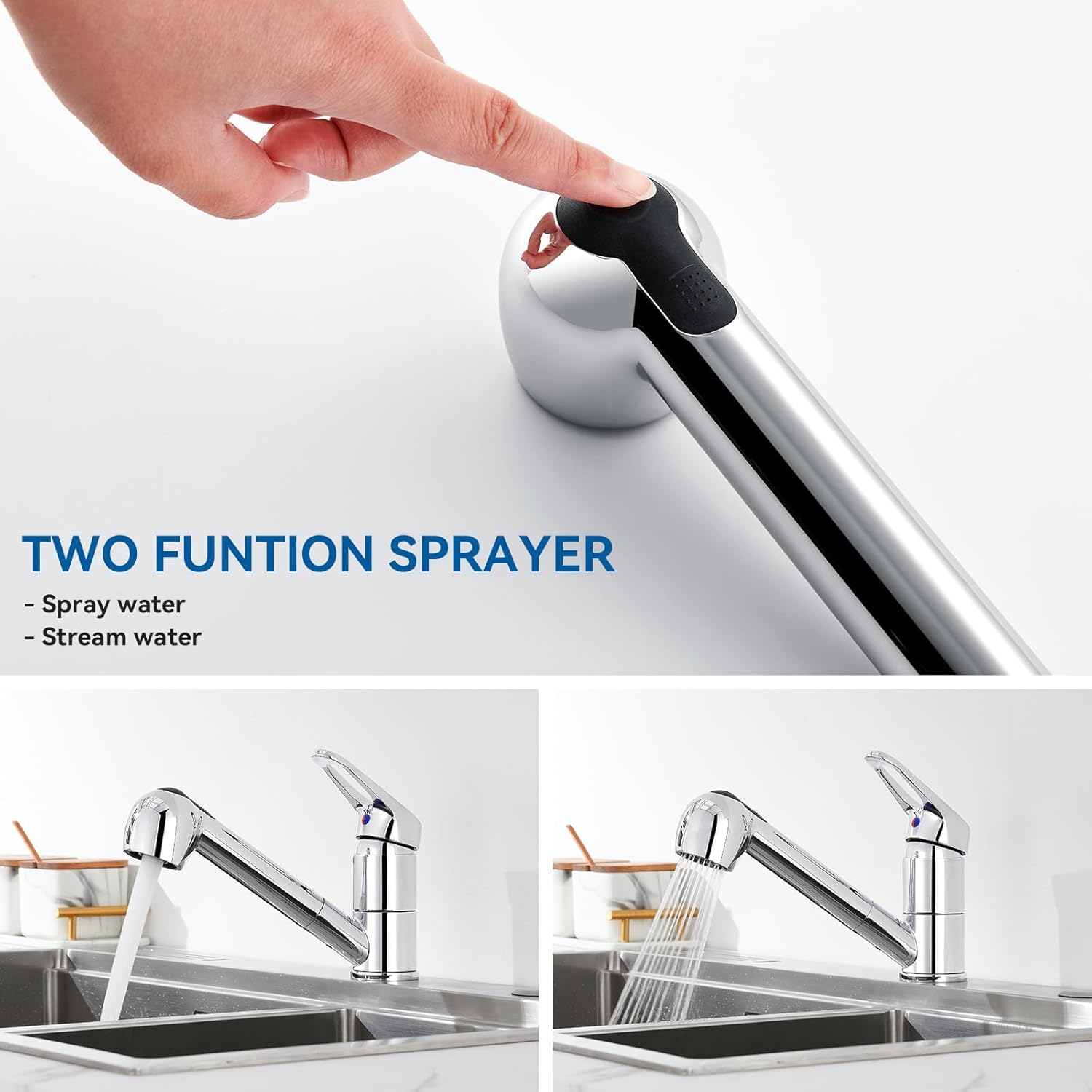 - 2 WASSERSTRAHLARTEN: Die waschbecken armatur verfügt über zwei praktische Wasserflussfunktionen: Brausestrahl und Wasserstrahl. Sie können den Wasserstrahl zum Waschen von Obst und Gemüse verwenden oder das Brausestrahl zum Abspülen von Schmutz auf