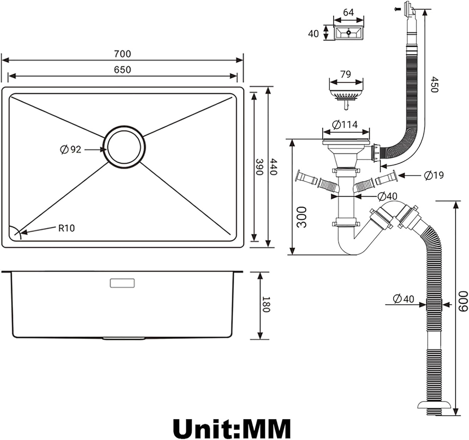 - GROss SPÜLBECKEN: 70*44*18CM Waschbecken Küche mit 65*39*18cm Einlage, grösser und tiefer als herkömmliche Spülen, so dass Sie grosse Teller oder Pfannen leichter abstellen und reinigen können.
