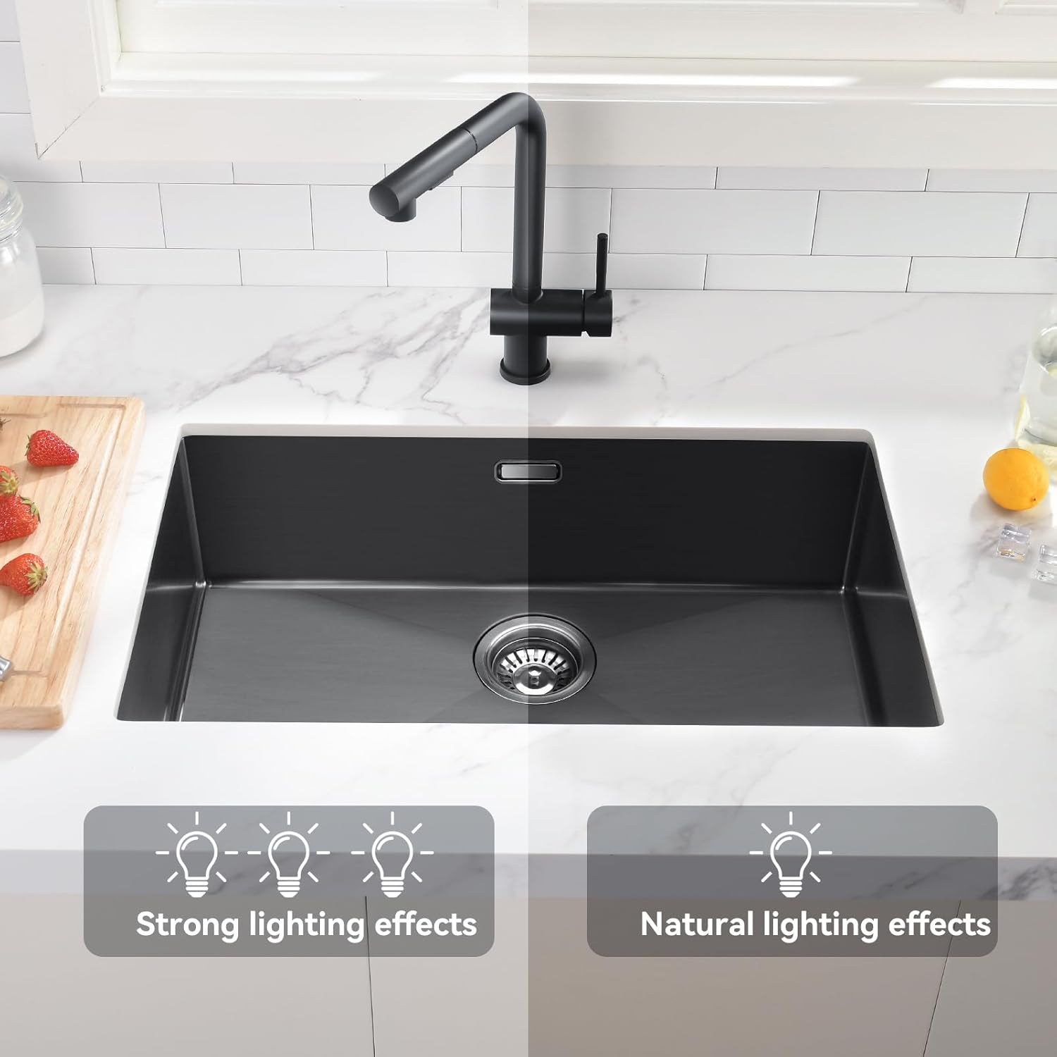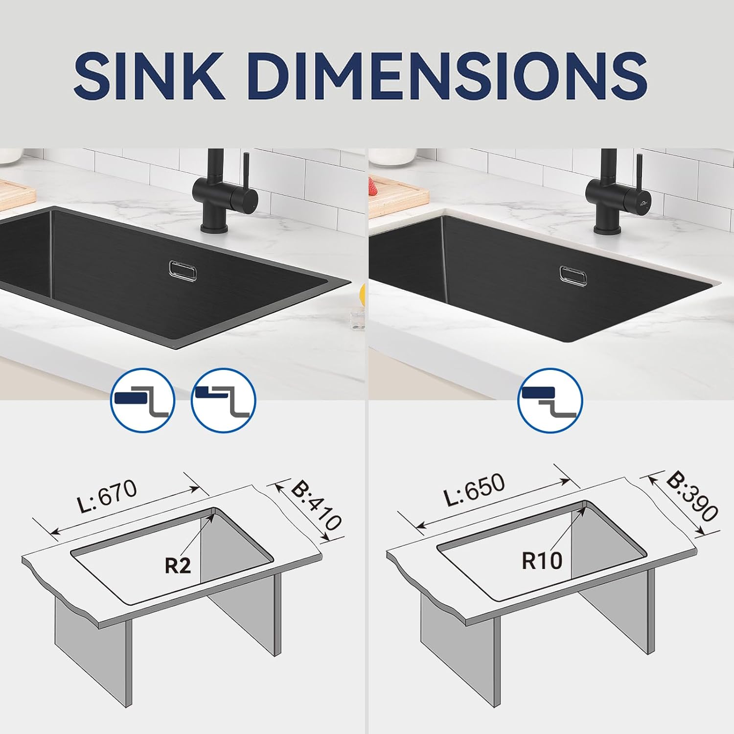 - ROBUST UND LANGLEBIG: Die Küchenspülen ist aus hochwertigem Edelstahl gefertigt, so dass Sie sich keine Sorgen um Verformungen machen müssen. PVD-nano-gespritzte Oberfläche, hygienisch, lebensmittelecht, hitze- und säurebeständig.