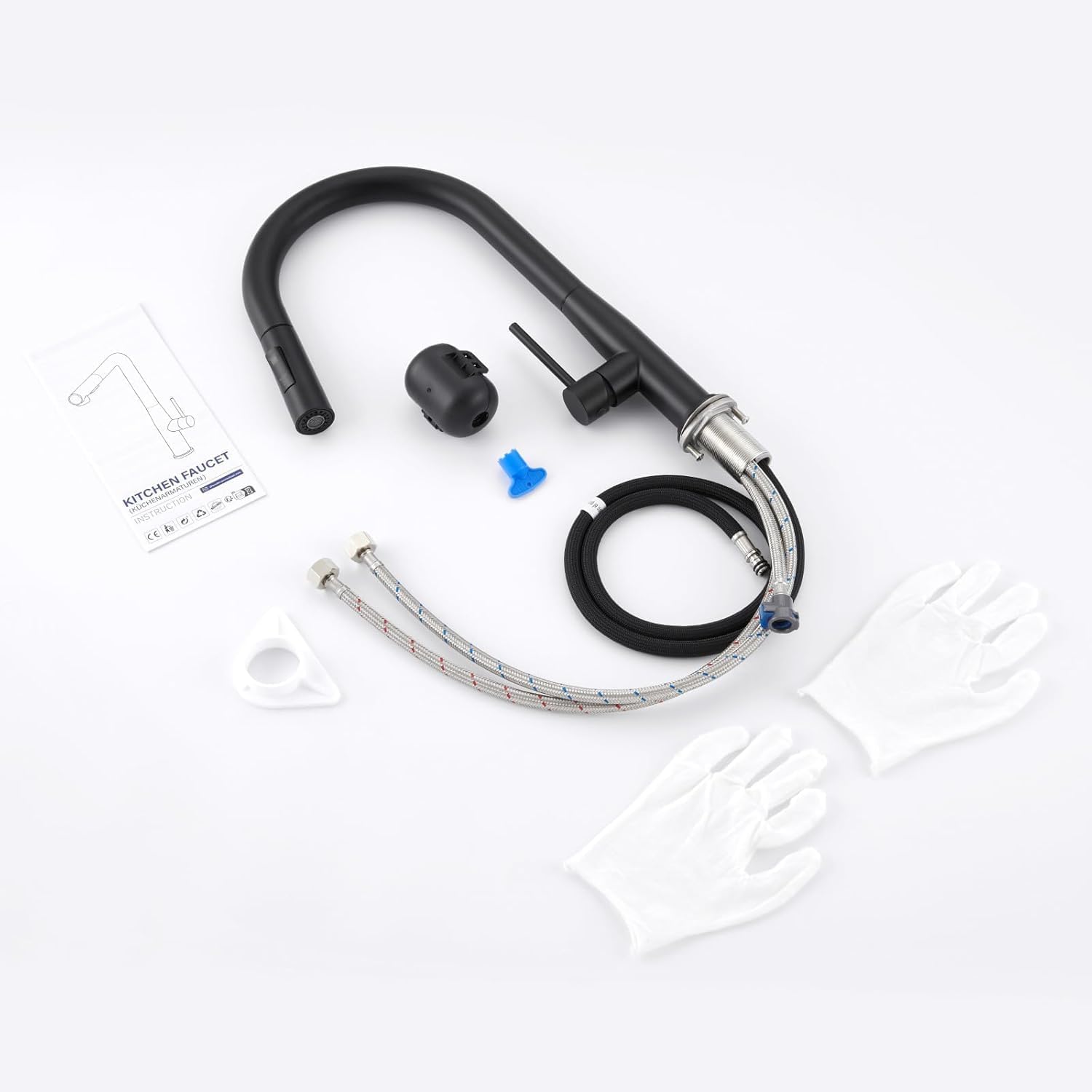 Auralum Wasserhahn Küche Schwarz, Hochdruck Küchenarmatur mit Brause Ausziehbar, Schwarz Armatur Küc