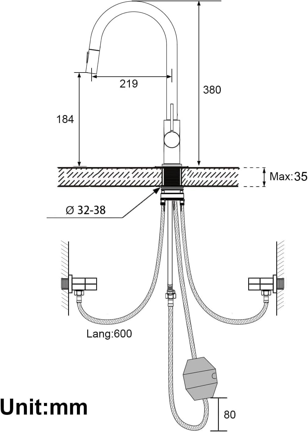 • HINWEIS: Bevor Sie einen ausziehbaren Wasserhahn bestellen, vergewissern Sie sich, dass unter der Arbeitsplatte genügend Platz für den ausziehbaren Schlauch und das Gegengewicht vorhanden ist.
