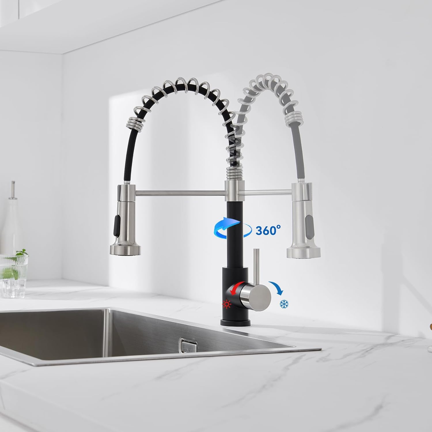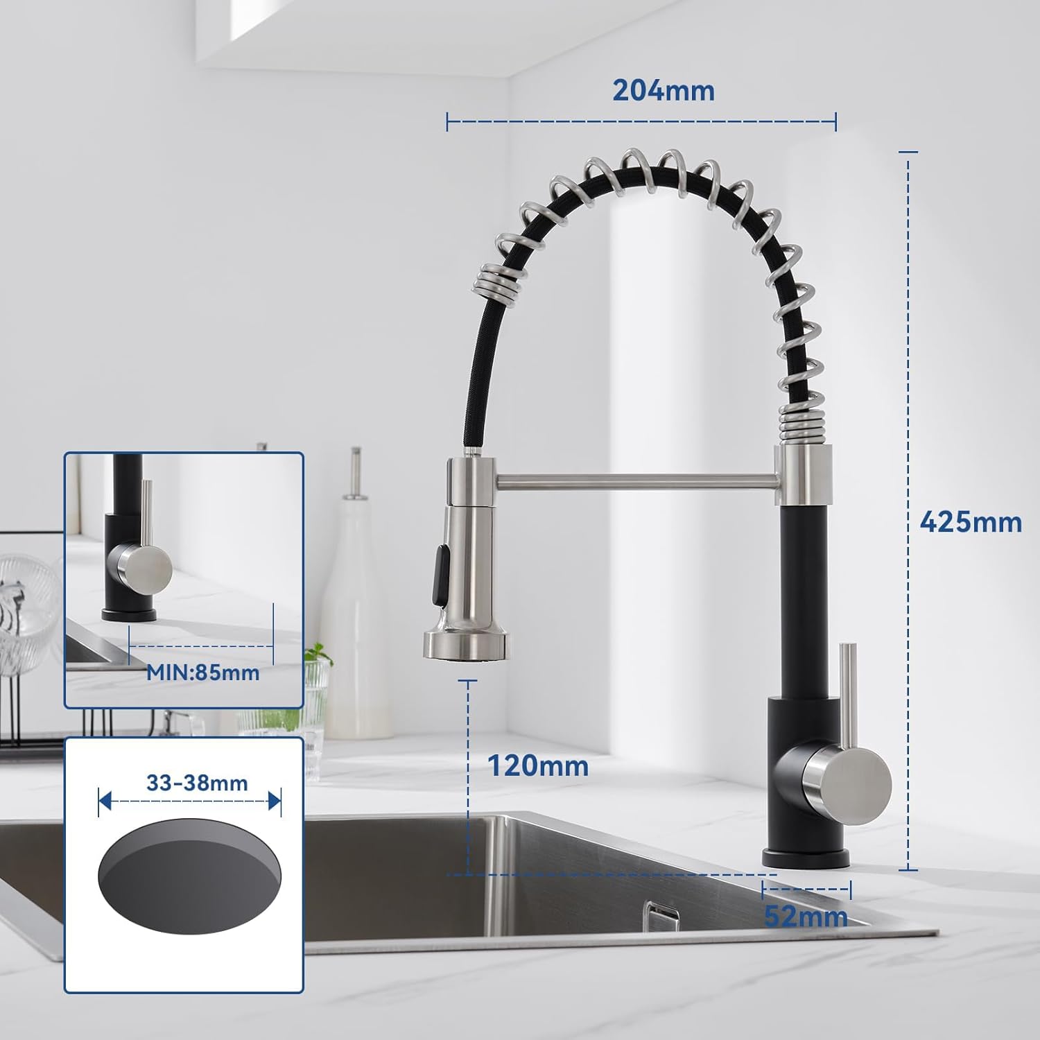 • GESUNDE WAHL: Die Küchenarmatur besteht aus Edelstahl 304 und ist zu 100 % blei- und nickelfrei. Ausgestattet mit einer KTW-zertifizierten kartusche und einem Schlauch, erfüllt er die Trinkwasser-Sicherheitsstandards und bietet Ihnen eine gesündere
