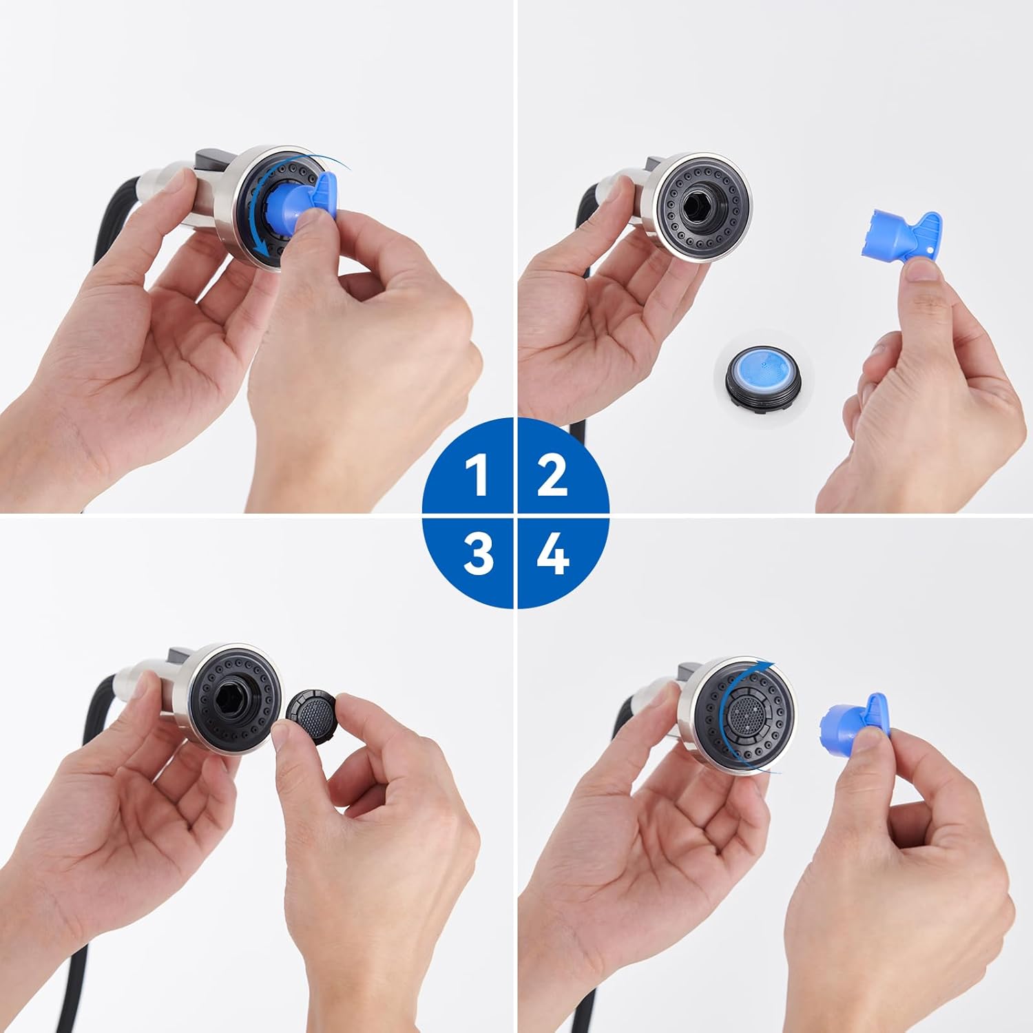 • ZWEI WASSERSTRAHLARTEN: Es gibt zwei nützliche Wasserflussfunktionen: Sprudelwasser und Duschwasser. Sie können den normalen Wasserstrahl zum Waschen von Obst und Gemüse oder das Duschwasser zum Abspülen von Schmutz von Geschirr und Spüle verwenden.