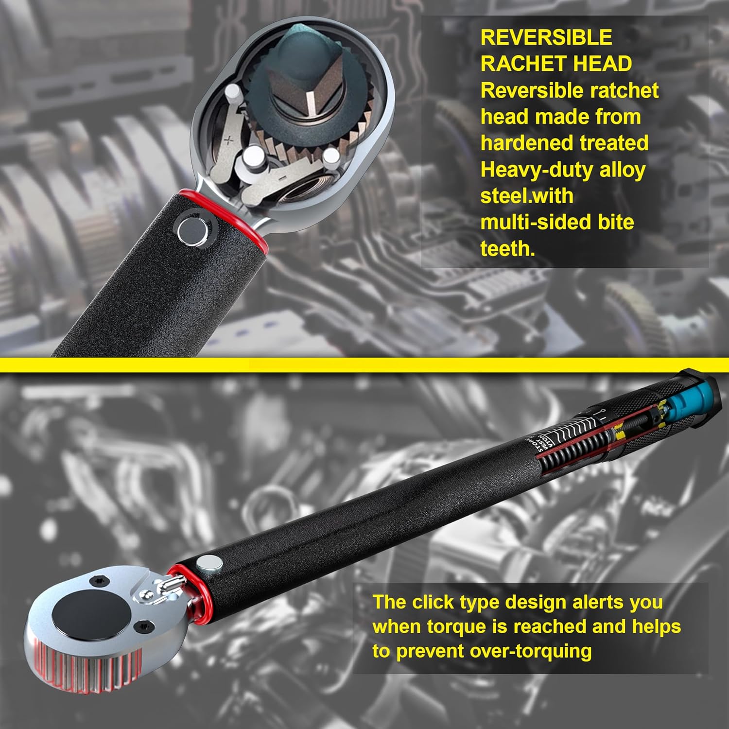 - 1/2 Zoll Umschaltknarre mit Vierkantantrieb, Gehärteter behandelter Legierungsstahl, 24-Zahn Ratschenmechanismus, für Rechts-/Linkslauf von 28-210 Nm.