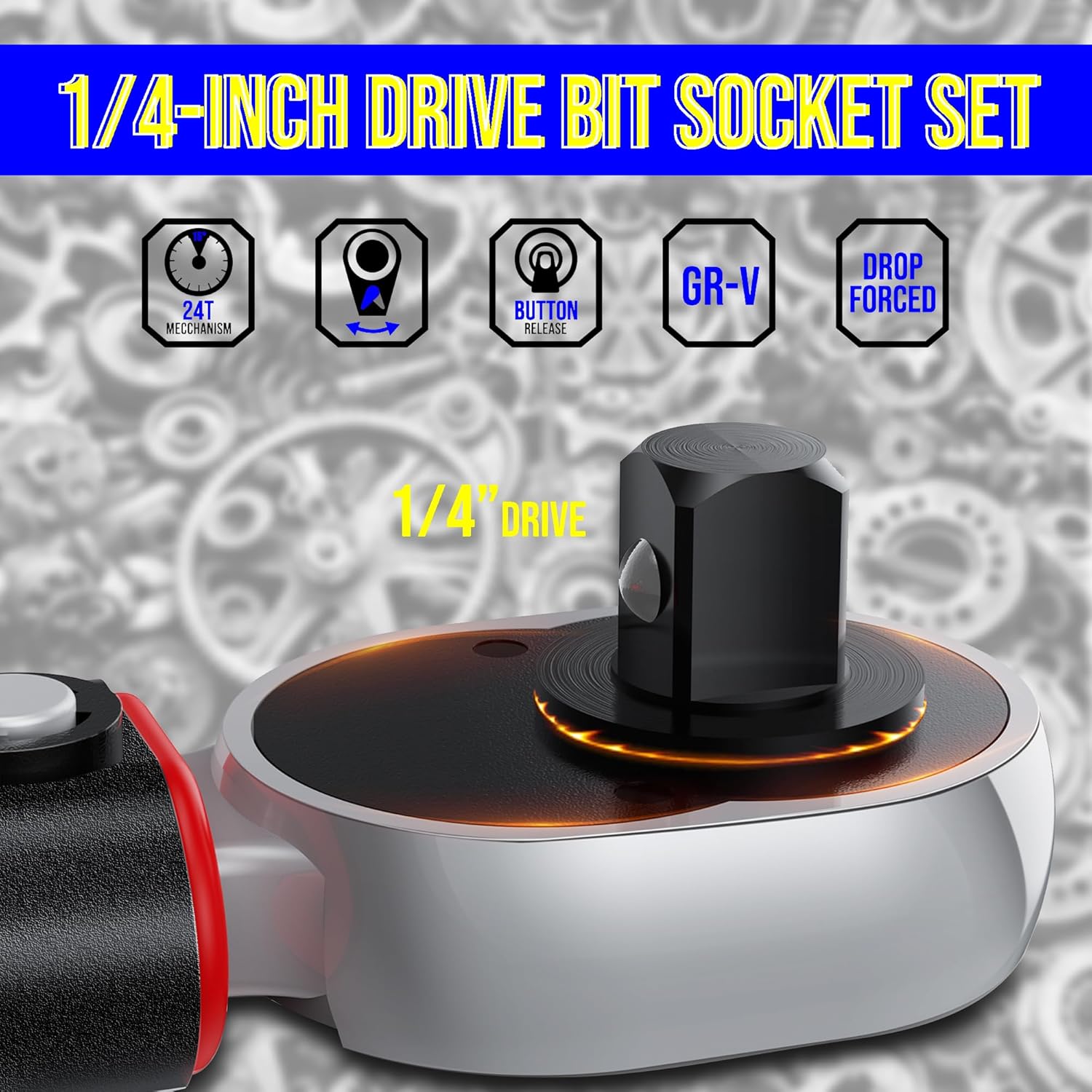 - 1/4 Zoll Umschaltknarre mit Vierkantantrieb, Gehärteter behandelter Legierungsstahl, 24-Zahn Ratschenmechanismus, für Rechts-/Linkslauf von 2-24 Nm