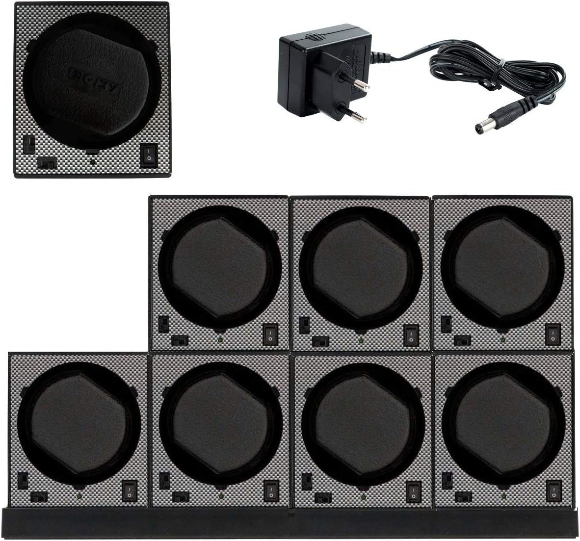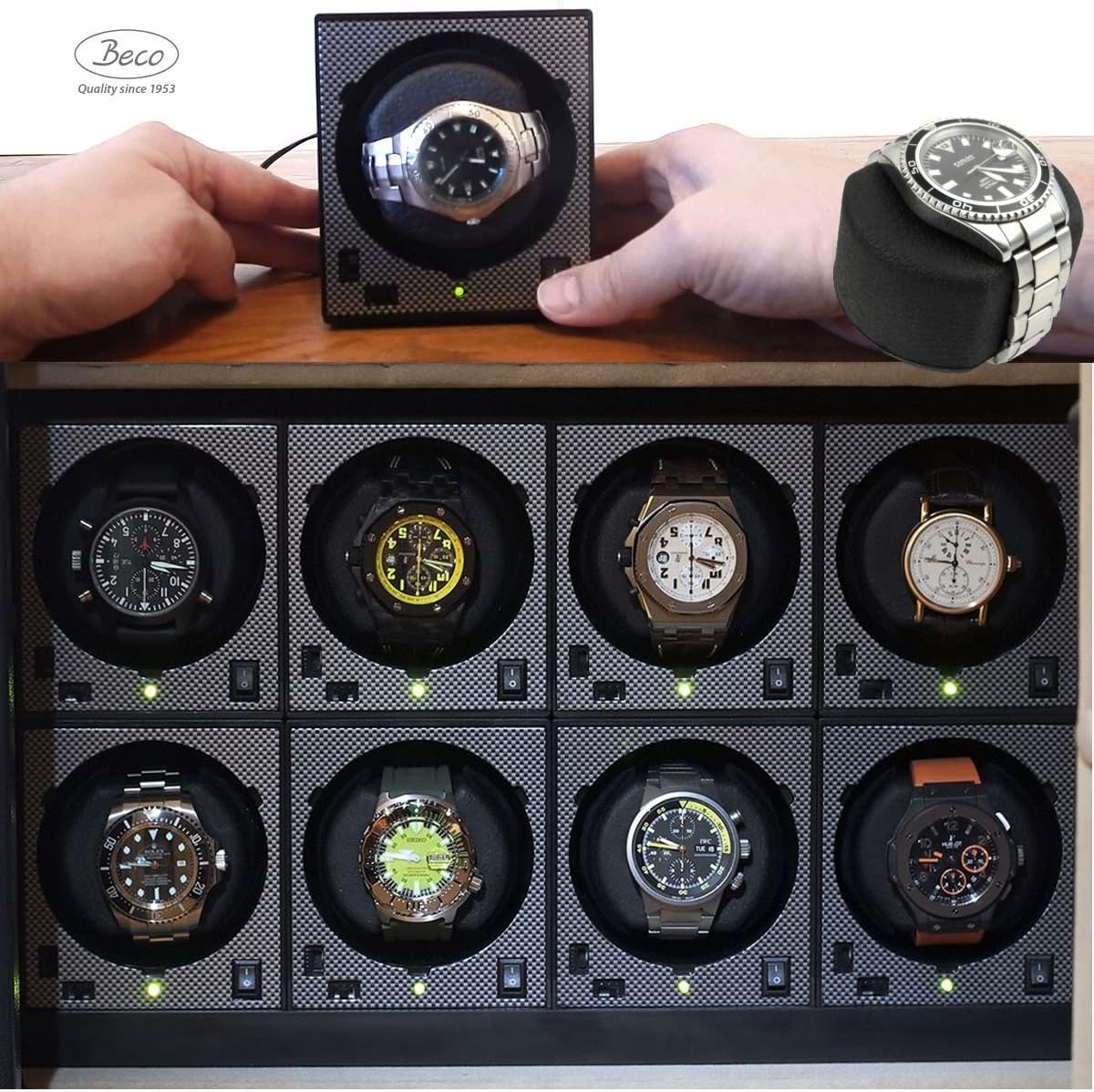 - Beco Technic Uhrenbeweger BOXY CLASSIC CARBON EDITION 2024 PRO8 MAX mit 8 Boxy Modulen für je eine Uhr inkl. Basisplatte für die Stromspeisung sowie Netzadapter 110 – 230 Volt.