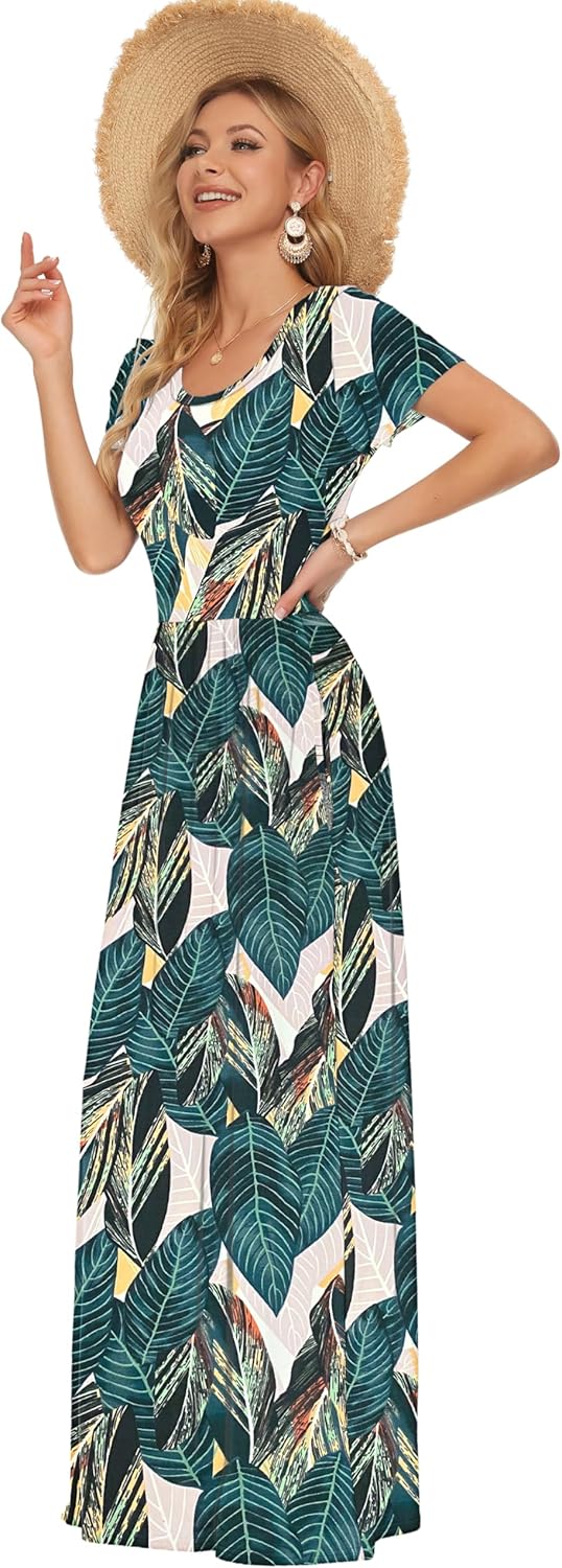 - Eigenschaften: Lässiger Stil, zwei Seitentaschen, Kurzarm, runder Hals, bodenlang, elastisch an der Taille, Maxikleider. Streckig, weich und bequem.
