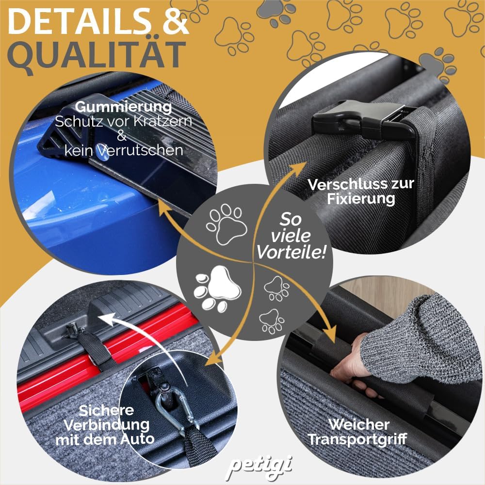 - LEICHT und ROBUST: Die Hundetreppe besteht aus hochwertigem Aluminium und Stahl. Mit 9,3 kg ist sie einfach zu tragen und zu handhaben, bietet aber dennoch eine hohe Tragkraft von bis zu 90 kg - ideal für kleine, mittlere und grosse Hunde im täglichen
