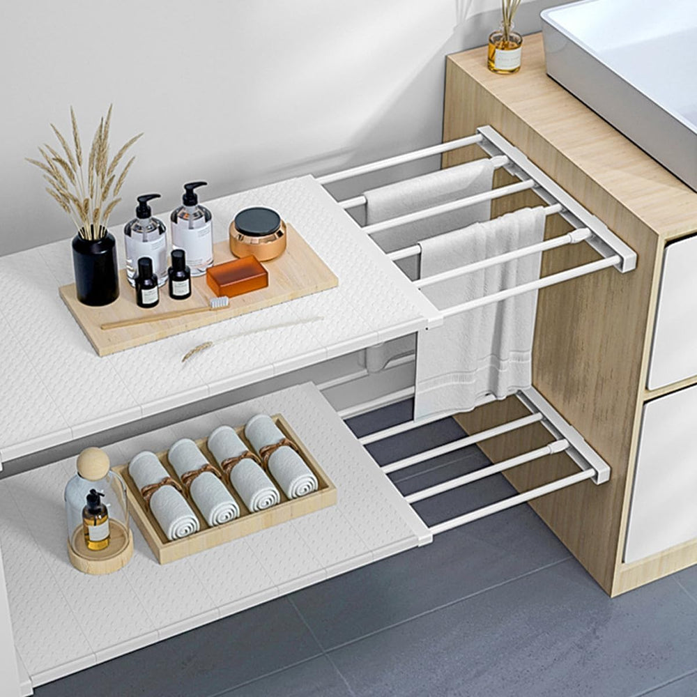 - 【Keine Löcher und Schrauben Erforderlich】: Verwenden Sie nur Reibung und Spannung und arbeiten sehr gut. Die Kissen an beiden Enden des Racks erhöhen nicht nur die Reibung, sondern sorgen auch dafür, dass Ihr Schrank nicht zerkratzt wird