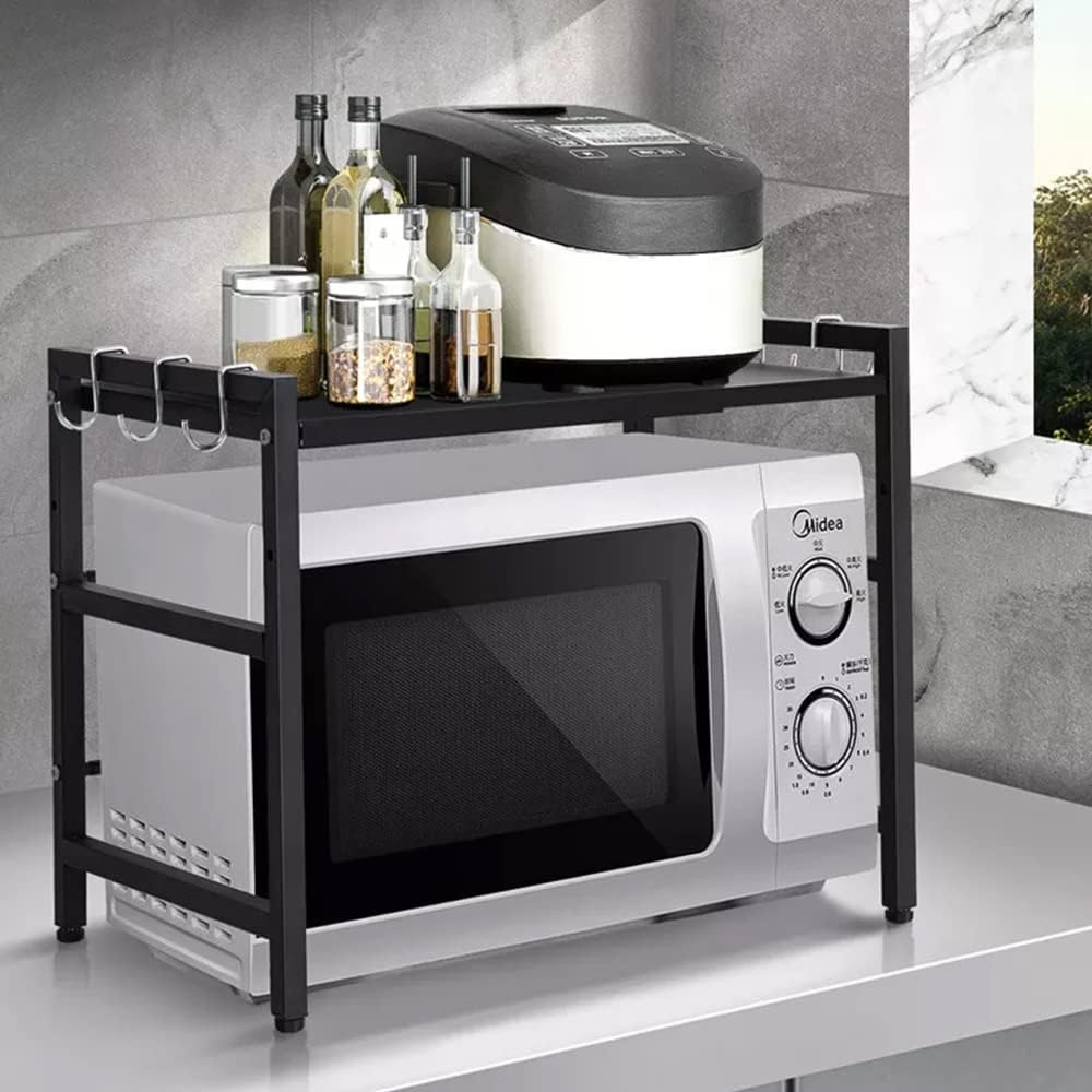 - 【Ausziehbar und verstellbar】 Der verstellbare Mikrowellenständer mit 2 Ebenen ist perfekt für die Aufbewahrung von Mikrowellenherden oder anderen Küchenutensilien. Die Länge des Regals kann durch einfaches Drehen der Teleskopstange von 40 auf 64