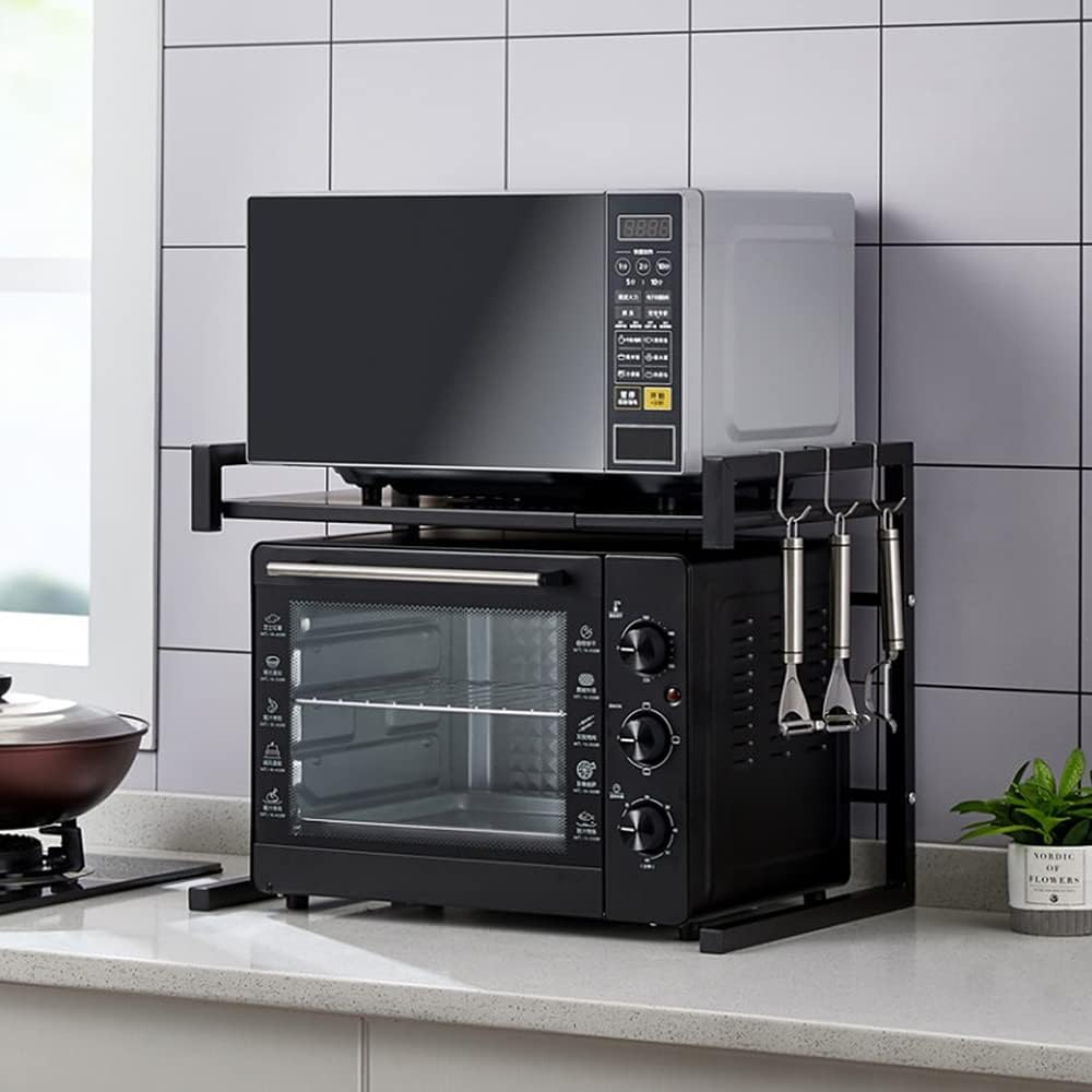 • 【Platzsparend】Die ausziehbare Mikrowellenhalterung hat 3 zusätzliche Haken, um verschiedene Anwendungen zu bieten: Aufhängen anderer kleiner Gegenstände und maximieren Sie Ihren Küchenraum. Sie können das Tuch, Handschuhe usw. aufhängen.