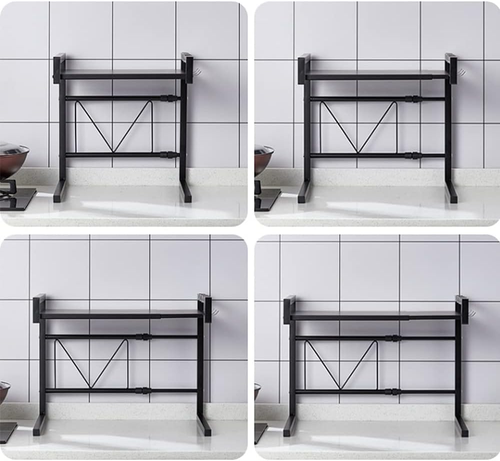 • 【Einziehbar und verstellbar】Die Länge kann zwischen 40 und 65 cm eingestellt werden. Das Regal ermöglicht es Ihnen, eine Mikrowelle oder andere Küchengeräte leicht aufzubewahren, wodurch Ihre Küche sauberer und aufgeräumter wird.