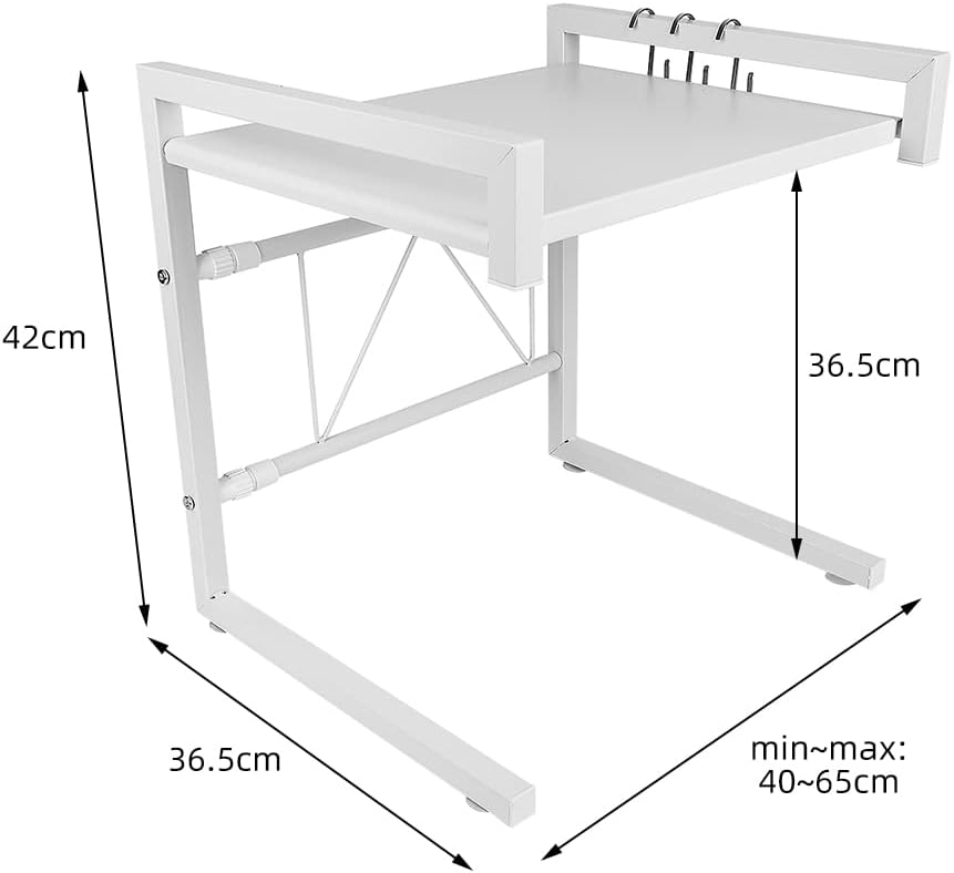 • 【Einziehbar und verstellbar】Die Länge kann zwischen 40 und 65 cm eingestellt werden. Das Regal ermöglicht es Ihnen, eine Mikrowelle oder andere Küchengeräte leicht aufzubewahren, wodurch Ihre Küche sauberer und aufgeräumter wird.