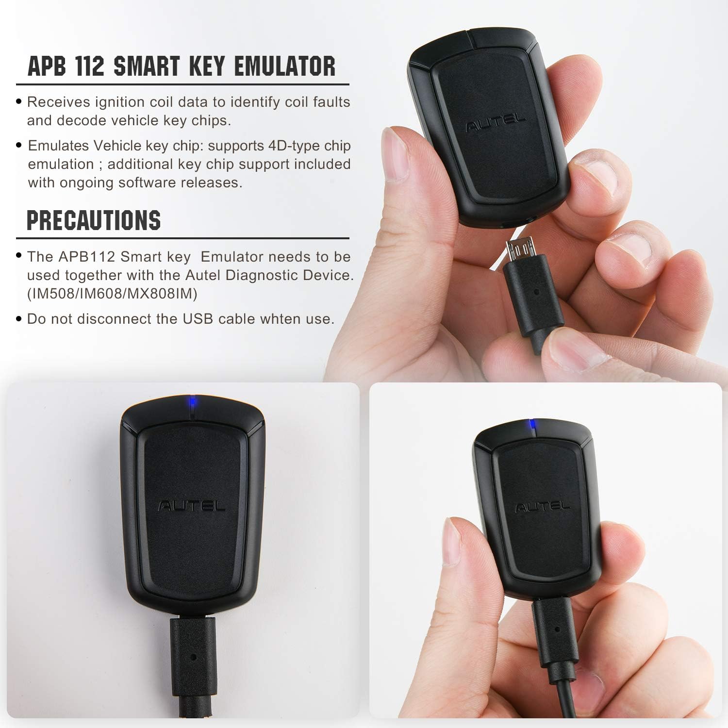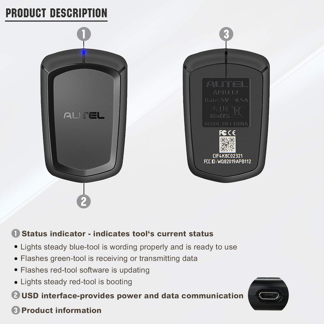 - ARBEITEN MIT IM508, IM608, MX808IM: Der Autel APB112-Smart-Key-Simulator funktioniert mit Autel-Diagnosetools wie IM608, IM508 (mit XP400) und MX808IM. Verbinden Sie den APB112 Smart Key Simulator mit dem mitgelieferten USB-Kabel mit Autel Diagnostic